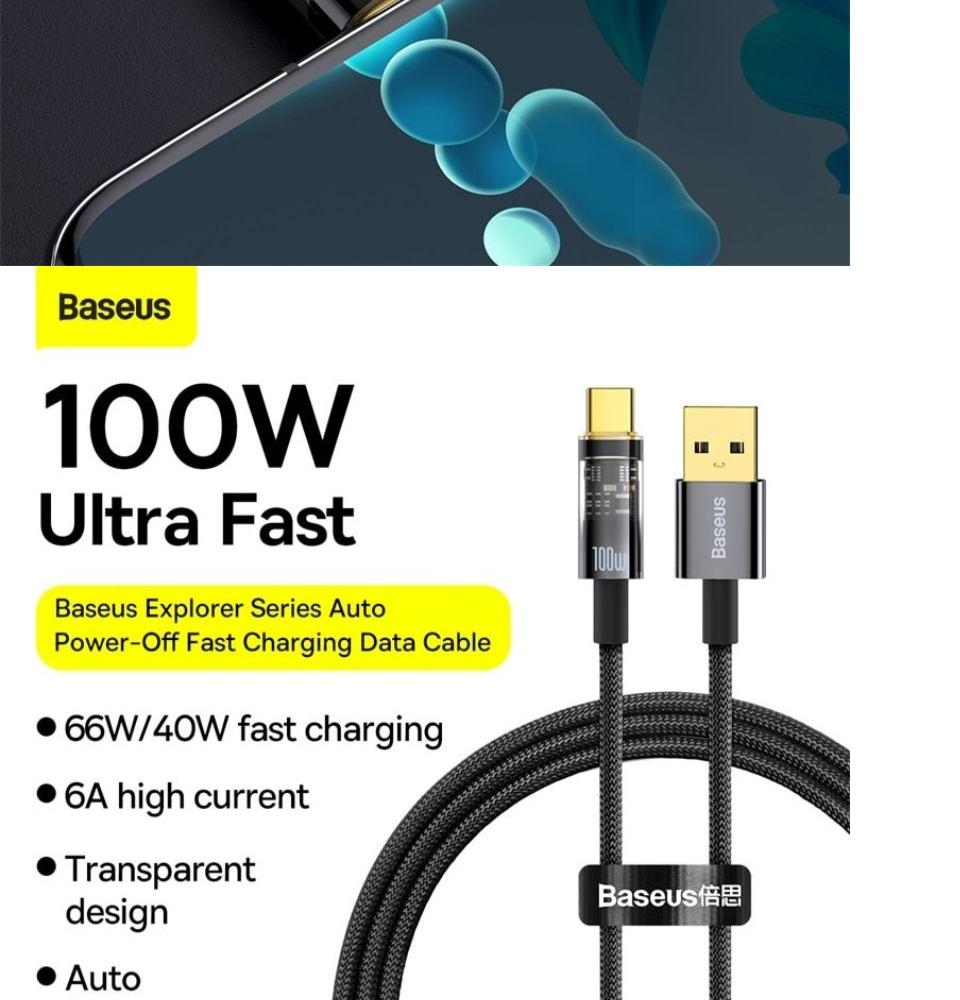 - Tên sản phẩm: Baseus Explorer Series Fast Charging Data Cable with Auto-Power-Off USB to Type-C 100W