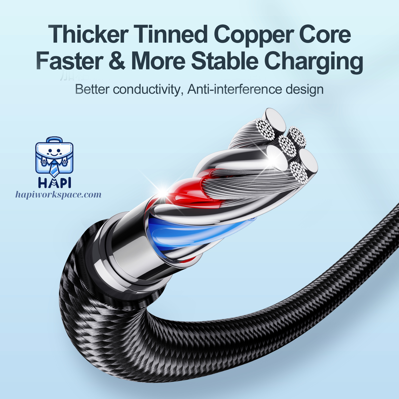 Cáp sạc nhanh 3 đầu 100W, tự động ngắt điện khi sạc đầy, bảo vệ và kéo dài tuổi thọ pin