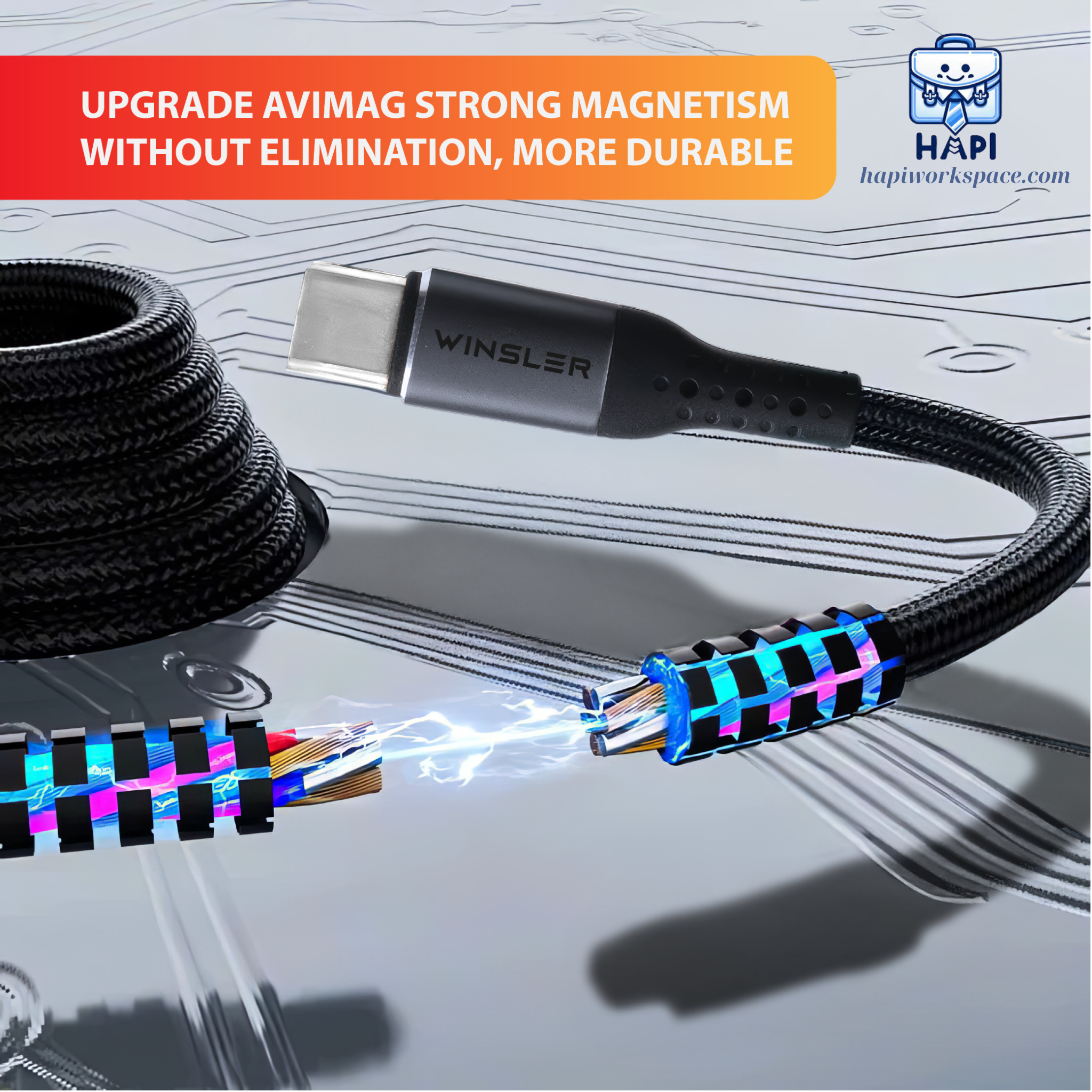 ✨Cáp sạc hàng chính hãng Winsler C to C 100W MC: Tích hợp nam châm cuộn gọn, sạc nhanh laptop, điện thoại