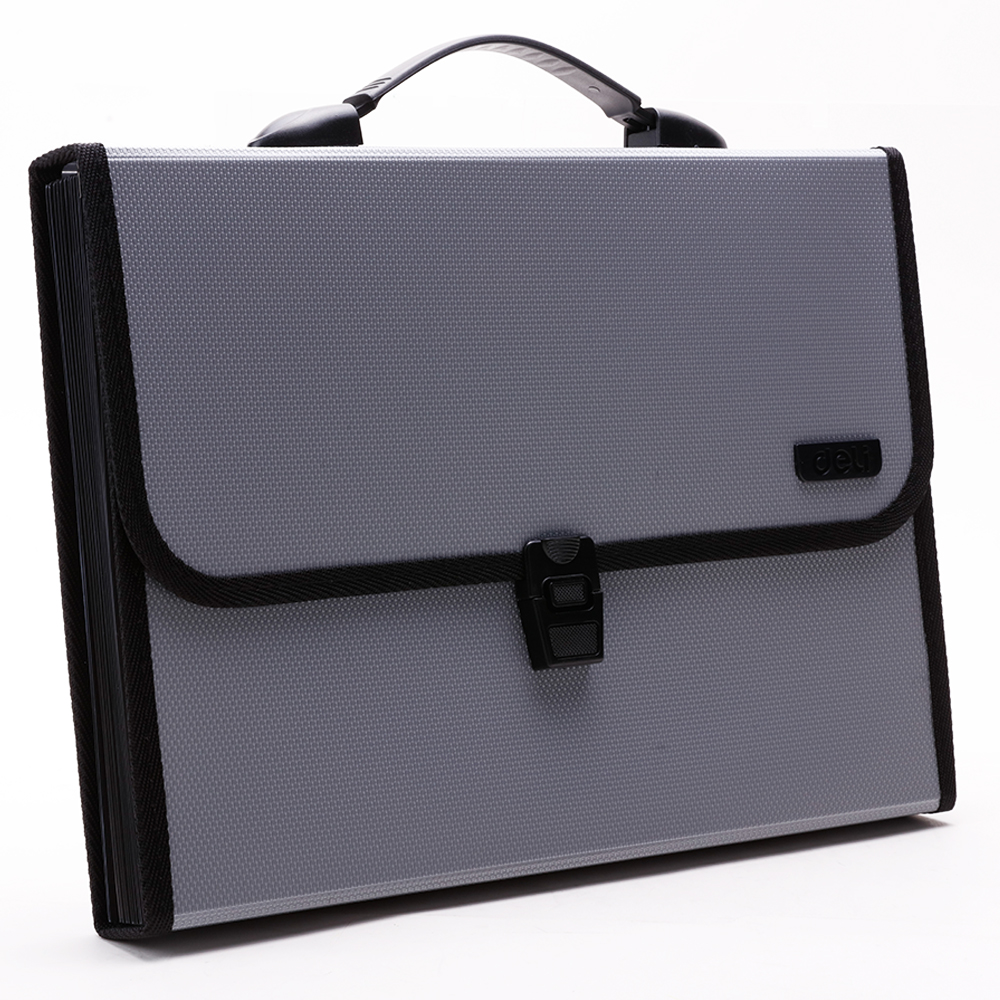 Cặp Tài Liệu A4 5559 Deli Cặp Tài Liệu A4 5559 Deli 12 ngăn, có quai xách và nắp cài tiện dụng, thời trang, dễ dàng mang theo bên mình. Nút cài bằng nhựa dễ