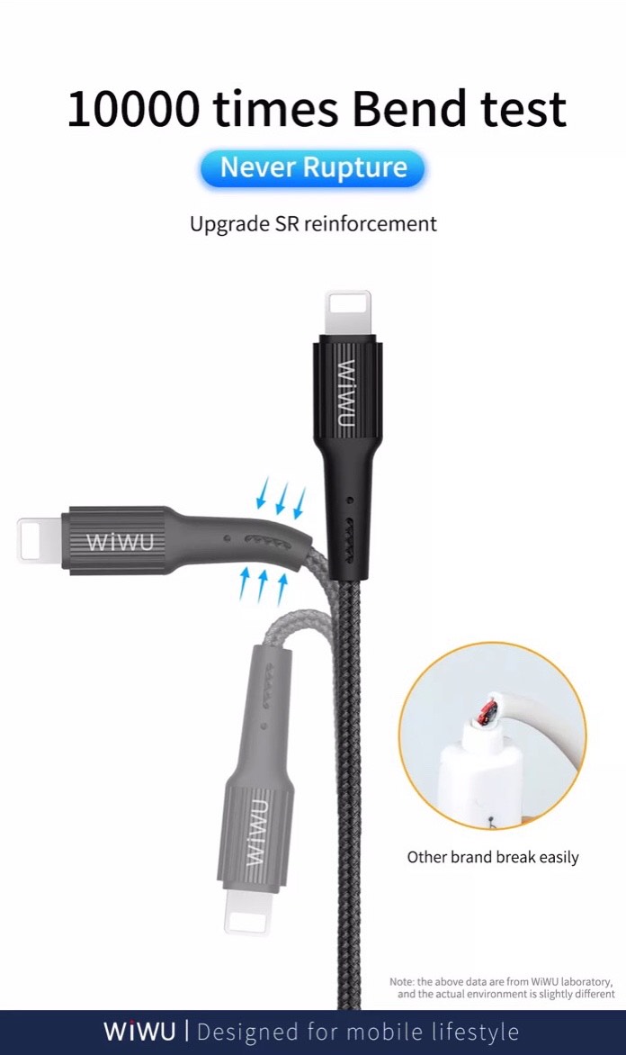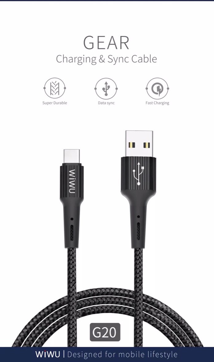 ✨Cáp Wiwu Gear Charging & Sync Cable 2.4A 1.2M G20 cho các thiết bị sạc Type-C, hỗ trợ sạc nhanh, chống rối - Hàng chính hãng
