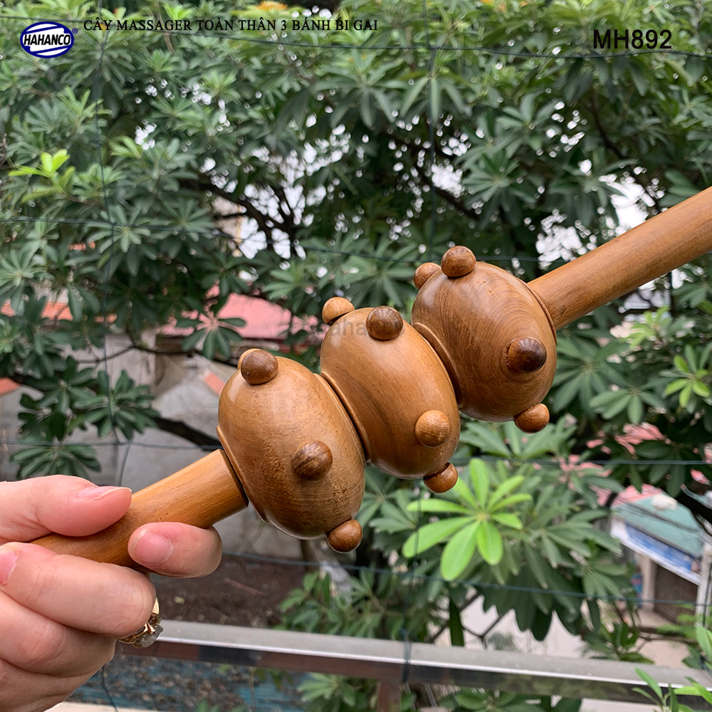 Dụng cụ massage lưng, có 3 vòng gai bằng gỗ có tác dụng massage các huyệt đạo dọc theo sống lưng, tăng tính đàn hồi cho cơ lưng, giúp giảm căng thẳng mệt mỏi. Ngoài công dụng mát xa phần lưng, cây lăn massage còn được sử dụng cho phần mông, đùi, vai, ngực trên, và những phần nhiều cơ bắp khác.