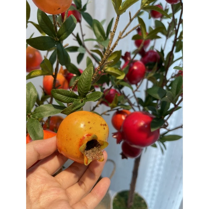 "Cây quả lựu giả" phù hợp trang trí cả ngoài & trong nhà bởi tính tiện dụng, thẩm mỹ & không còn lo chăm sóc như cây thật.