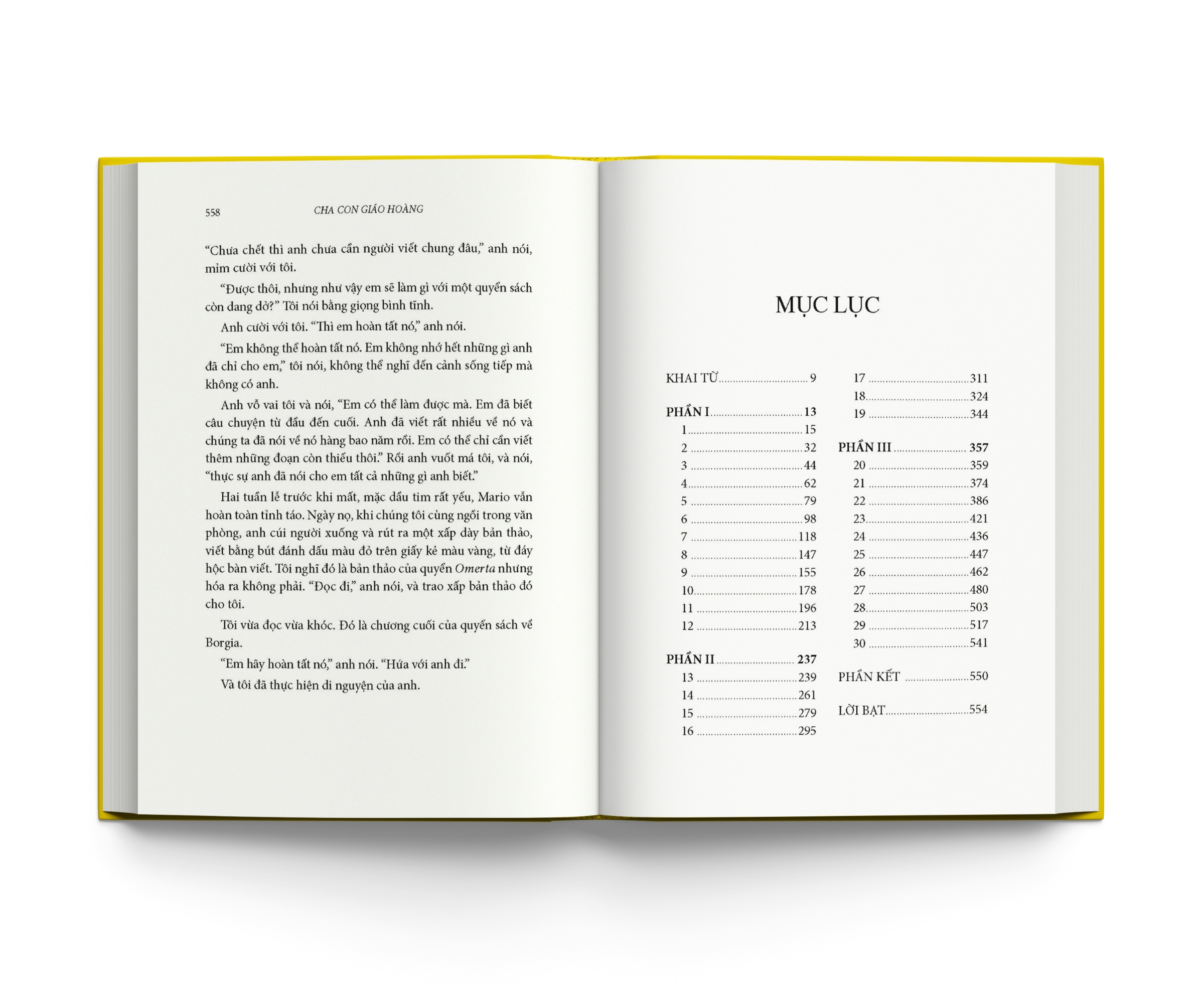 Cha con Giáo hoàng là một thiên sử thi xuất sắc, pha trộn màu sắc lãng mạn với chất cuồng điên của lòng tham quyền lực, những mưu ma chước quỷ, tội lỗi và trừng phạt… vượt xa khỏi trí tưởng tượng của người thường. Cuốn sách mang người đọc du hành đến một không gian, thời gian hoàn toàn khác, nơi Giáo hội nắm quyền thống trị tối cao, nơi lửa tham vọng ngùn ngụt cháy dưới tấm áo choàng đỏ rực. Đây là câu chuyện về mối quan hệ cha con kì lạ: gắn bó với nhau bởi huyết thống, lòng tận tụy và những ý đồ đen tối; về một gia đình khét tiếng mà công trạng và tội lỗi còn mãi lưu truyền hậu thế: gia đình Borgia.