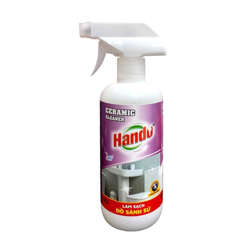 Thông tin sản phẩm: Chai xịt làm sạch vách kính nhà tắm Hando 570ml - Xuất xứ thương hiệu: Hando-Việt Nam - Dung tích: 570ml - Thiết kế: dạng chai xịt - Hạn sử dụng: