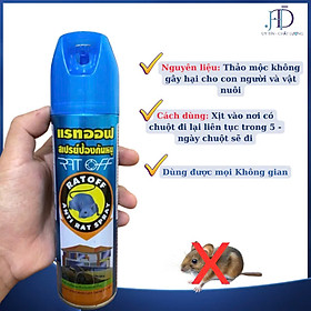 Chai Xịt Đuổi Chuột RAT OFF ANTI RAT SPRAY Xuất xứ: Thái Lan Thể tích: 300ml HSD: 1 năm kể từ ngày mở nắp sản phẩm ️ Nhà nào có “anh tí” quanh quẩn thì