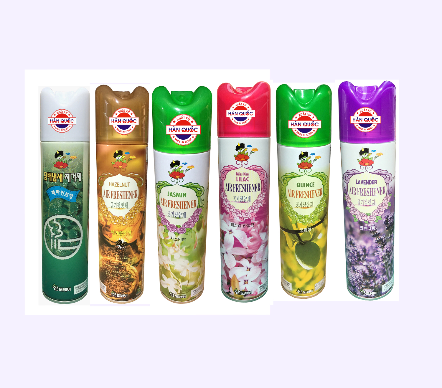 Công dụng : Sản phẩm xuất xứ từ Korea dùng để tạo không khí tươi mát, dễ chịu với hương thơm nhẹ nhàng, dễ bay hơi, không thấm sâu vào đồ vật trong phòng, xe hơi…Thành phần : Chiết xuất từ tinh dầu hoa quả từ thiên nhiên Mùi hương : Jasmin (Hoa nhài), Lilac (Tử đinh hương), Hazelnut (Cà Phê), Lavender (Hoa oải hương), Hương bạc hà.Quy cách : Bình dạng xịtKích thước bình : Dài x Rộng x Cao = 5 x 5 x 22,5 cm