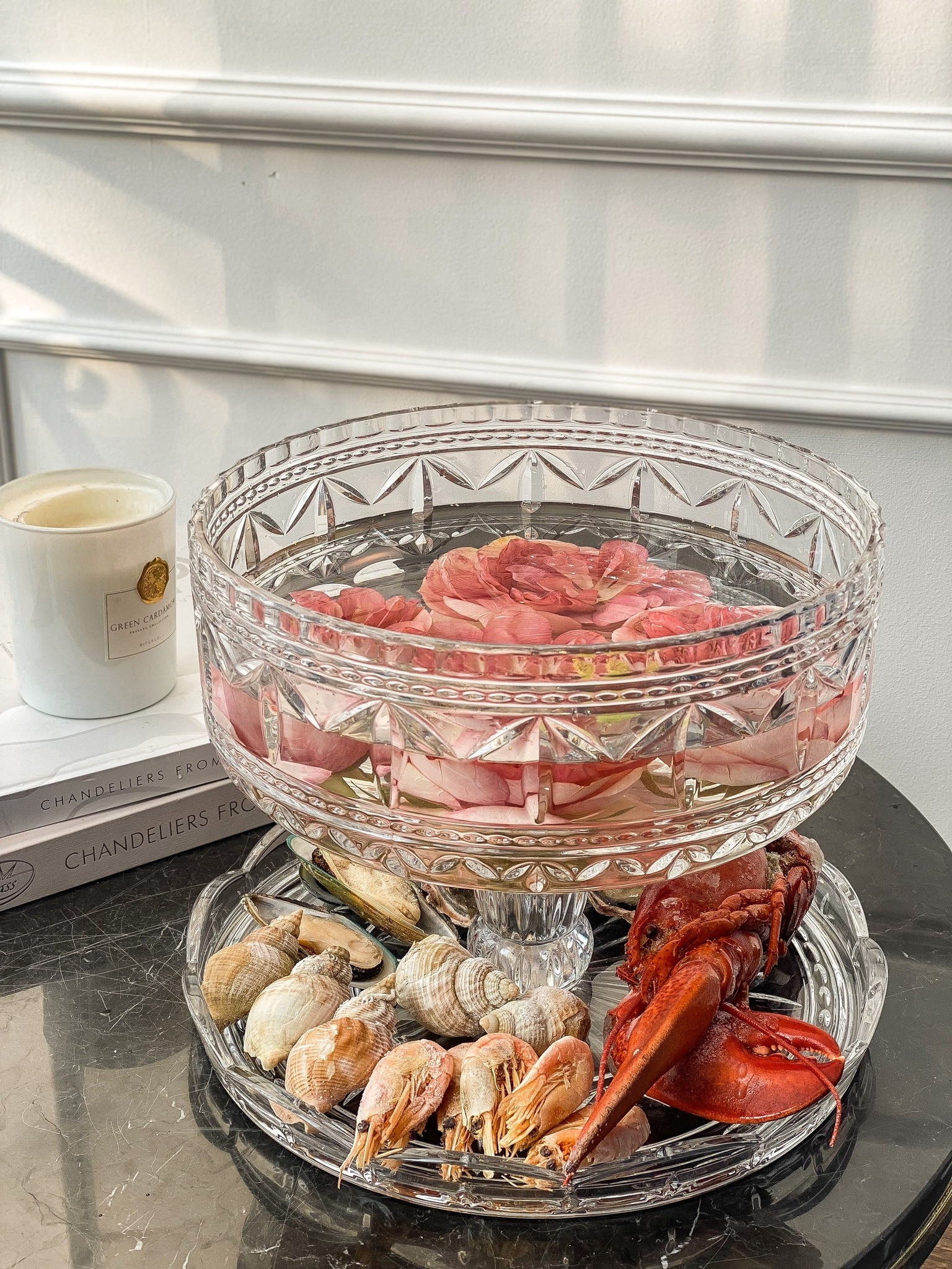 Đĩa hoa quả pha lê đúc là món đồ nội thất có thể trang trí bàn phòng khách, phòng ăn; Có thể đựng trái cây, bánh kẹo để không gian sống trở nên lung linh