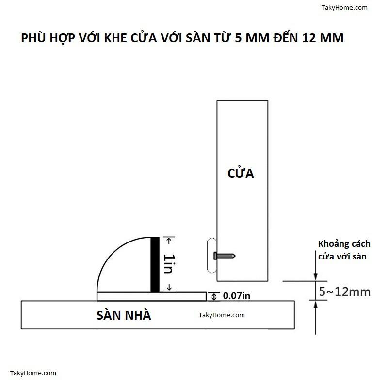 - Dành cho khe cửa cao từ 0,5 đến 1,2 mm