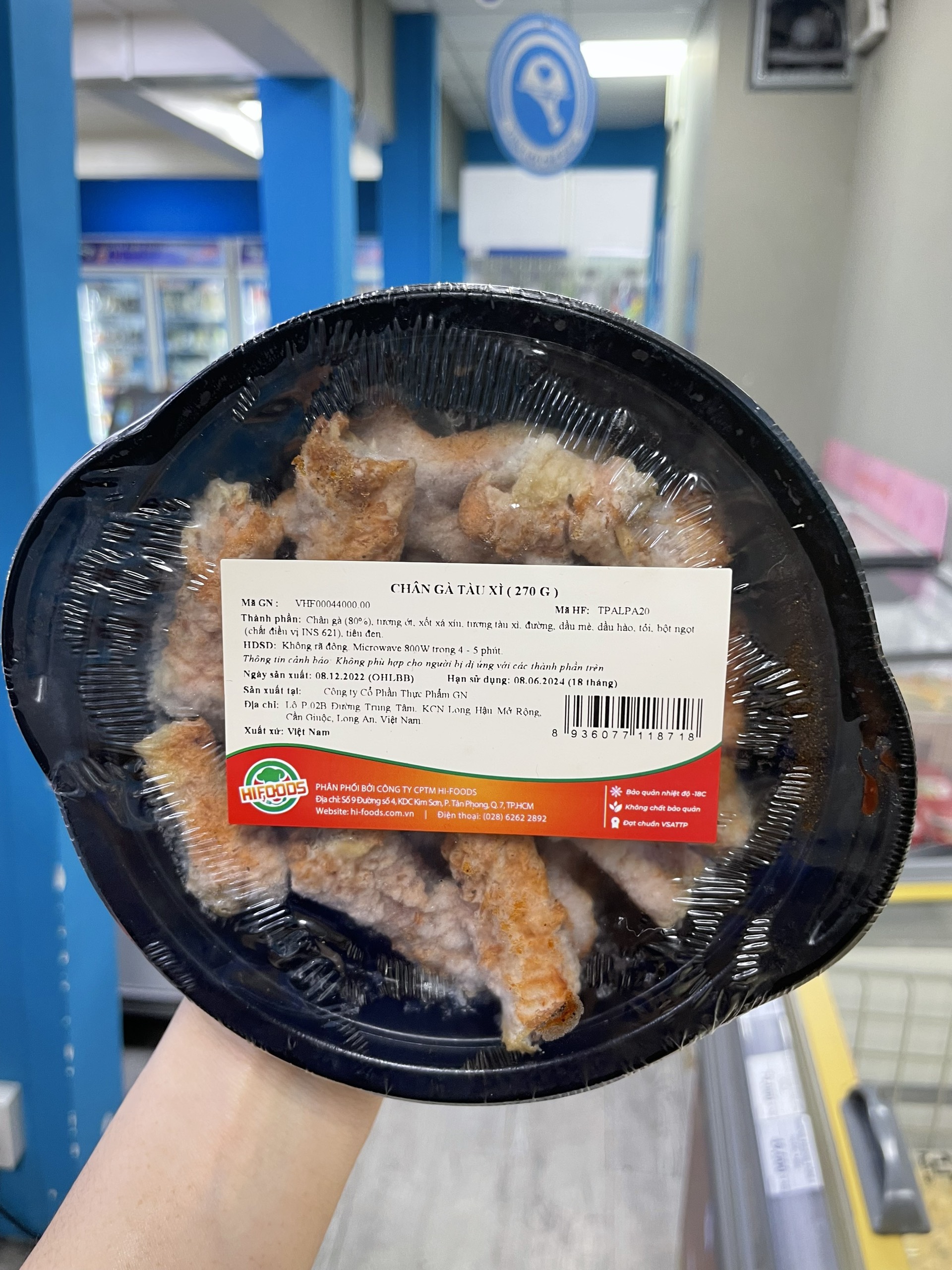 Mua tại TiktokVới sản phẩm tươi sống, trọng lượng thực tế có thể chênh lệch khoảng 10%. ĐỊNH LƯỢNG: 270g THÀNH PHẦN: Chân gà (80%), nước, xốt xá xíu, dầu mè, tương ớt, tương tàu xì, tỏi, bột năng, dầu hào, đường, bột ngọt (chất điều vị INS 621), tiêu MÔ TẢ SẢN PHẨM: