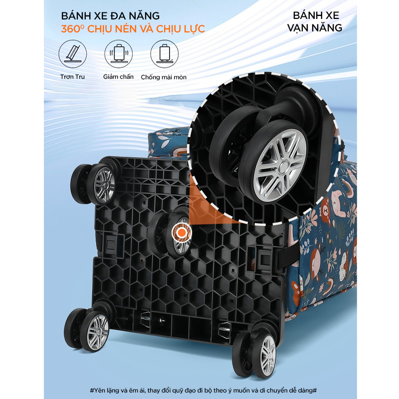 • Chân kéo gồm 5 bánh xe chống trượt với cơ chế hoạt động xoay 360 độ, dễ dàng di chuyển với những địa hình gồ ghề