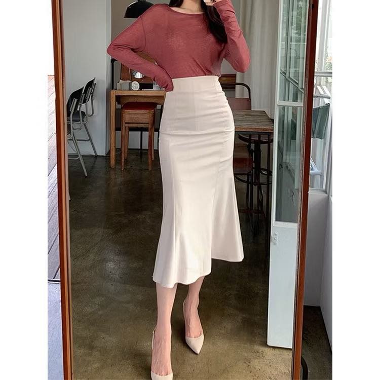 Chân váy đuôi cá màu trắng kem thời trang Hàn Quốc - Giới tính: Nữ - Xuất xứ: OEM - Kiểu mẫu: Trơn - Loại sản phẩm: skirt - Kích cỡ: Freesize (<56kg, eo <68)