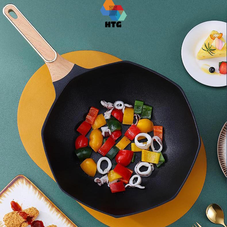 Chảo rán được làm bằng vật liệu thép dày với bề mặt chống dính, chống gỉ, không dễ cháy, dẫn nhiệt đều và nhanh cài thiện hiệu quả nấu nướng của bạn và làm cho