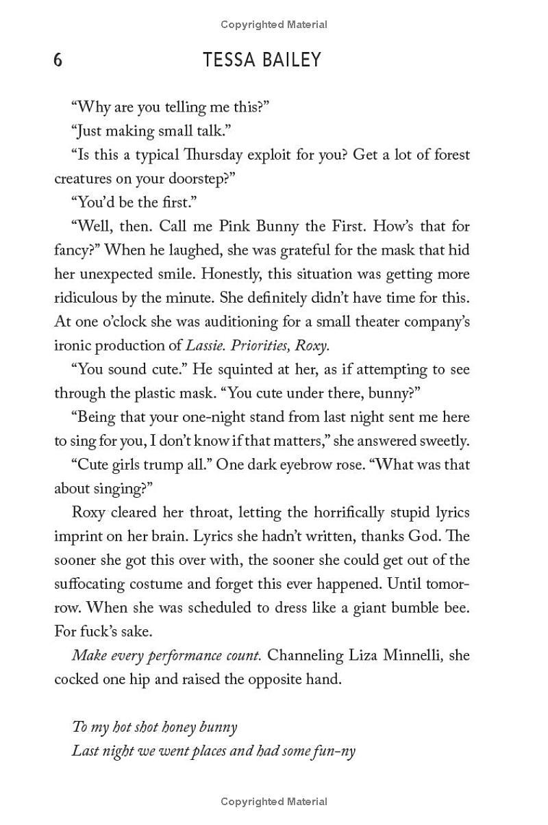 College drop-out Roxy Cumberland moved to New York with dreams of becoming an actress, but her dwindling bank account is quickly putting the kibosh on that fantasy. To make some quick cash, she signs up to perform singing telegrams. Her first customer is a gorgeous, cocky Manhattan trust-funder if she ever laid eyes on one. And what could be more humiliating than singing an ode to his junk, courtesy of his recent one night stand Maybe the fact that she's dressed in a giant pink bunny