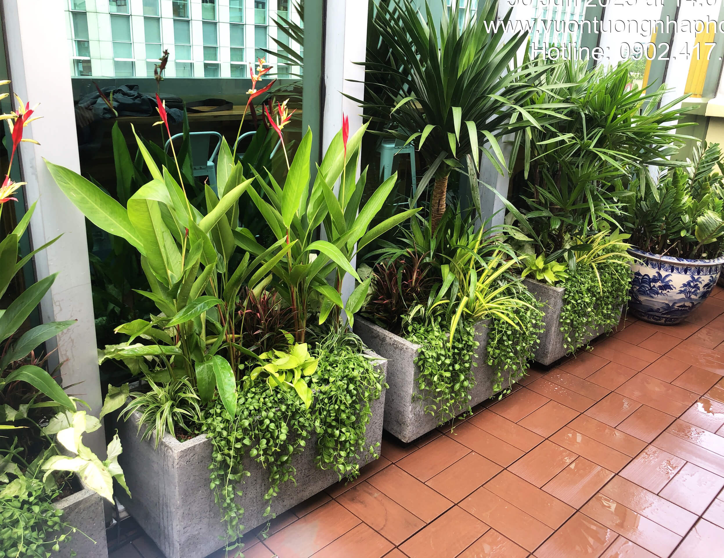 Trồng cây tranh trí ban công chung cư hay cây ban công văn phòng bằng chậu đá mài là cách lựa chọn Đơn giản hơn và tiết kiệm chi phí hơn sơ với những mảng cây tường đứng phủ xanh gồm: