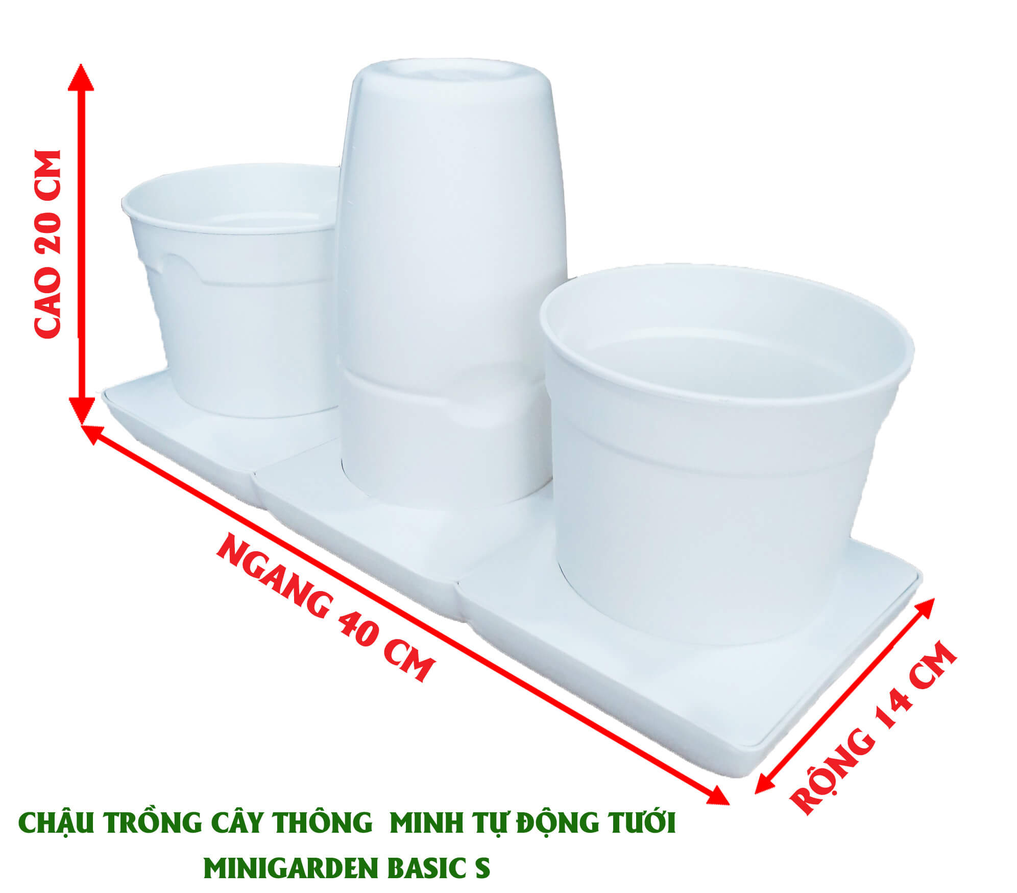 1.Mô Tả Chậu KIT Tự Dưỡng Minigarden Basic: + Nhập khẩu: Bồ Đào Nha + Kích thước Base Chậu: Ngang 38cm x 14 cm x 22 cm. Bảo Hành Chậu Tự Dưỡng Basic lên đến 10