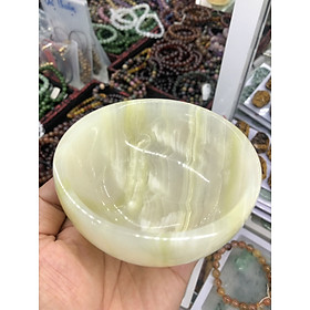Chất liệu: Đá ngọc hoàng long Kích thước: Đường kính 10,5cm; Cao 4cm; Sâu 2,7cm Khối lượng: 260g