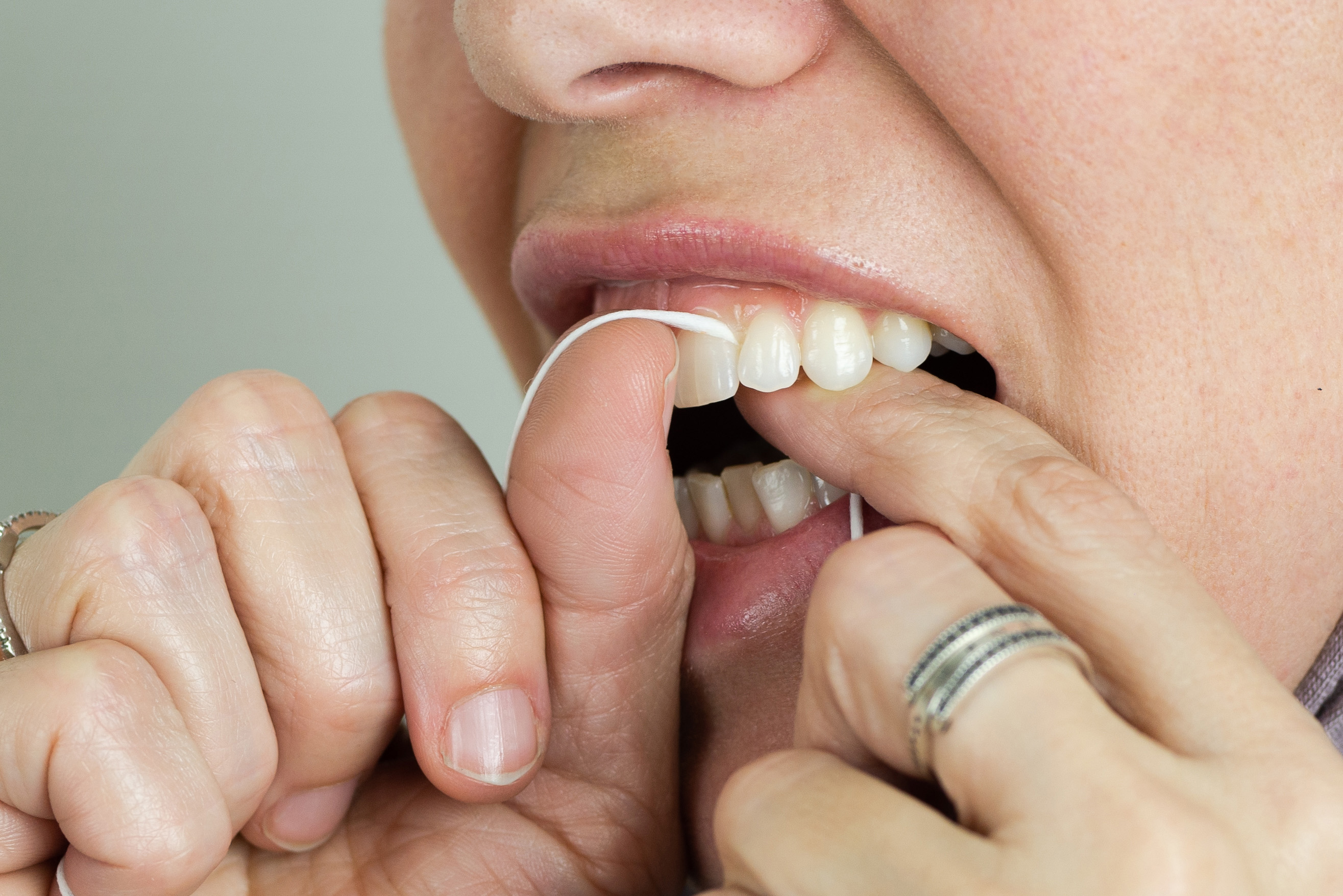 3. Nhẹ nhàng đưa chỉ nha khoa vào giữa các kẽ răng, uốn cong chỉ nha khoa quanh mỗi răng.