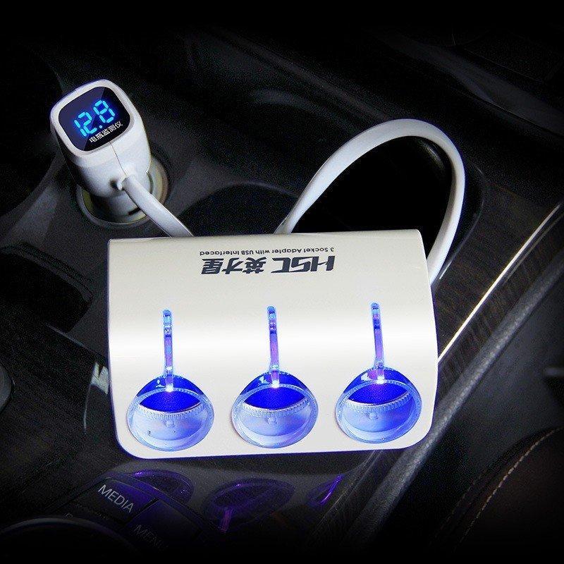 ✨Chia tẩu Ô tô 1 ra 3 công suất 120W có cổng sạc USB và báo điện áp