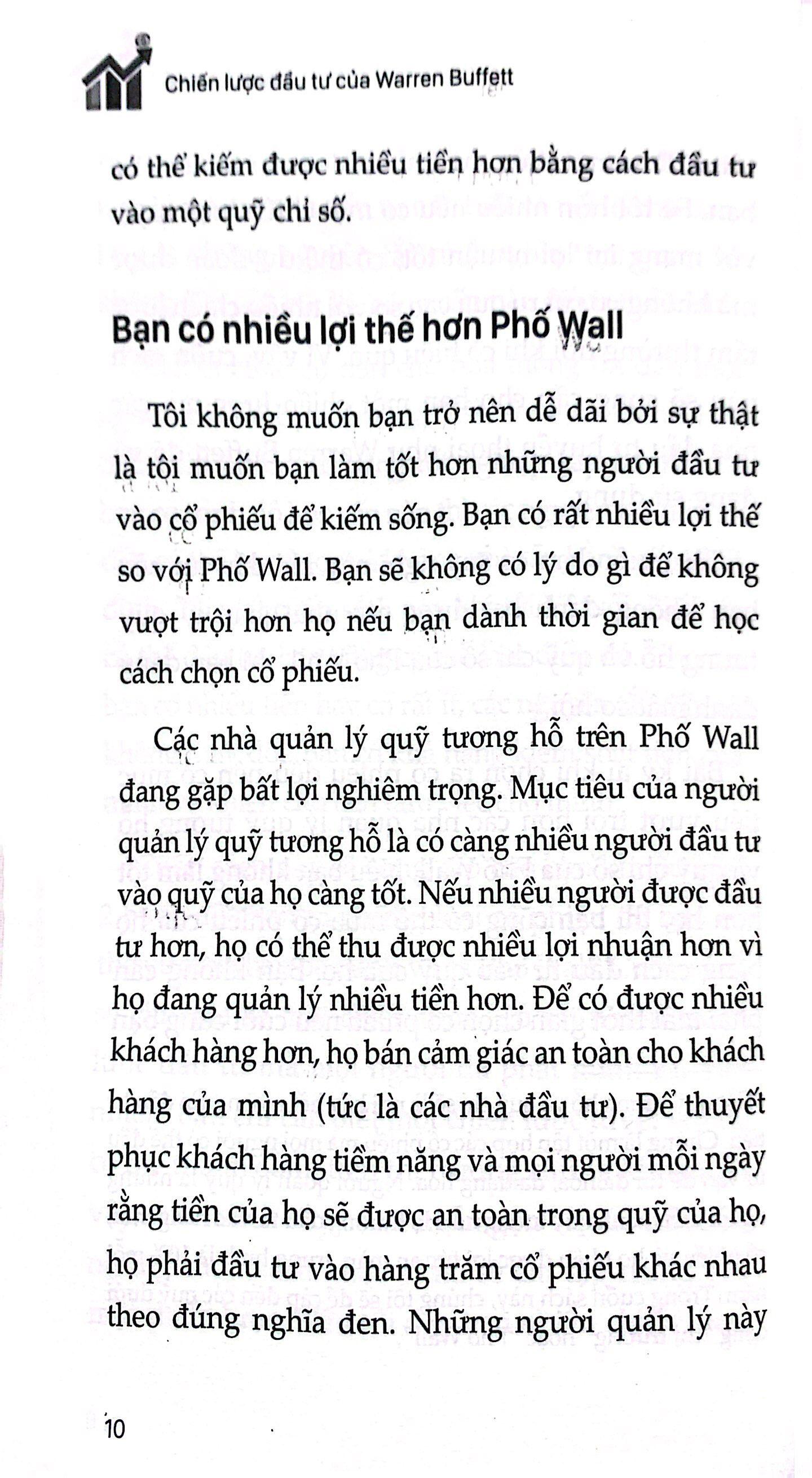 “Chiến lược đầu tư của Warren Buffett”sẽ cung cấp cho bạn khuôn khổ 2 bước để chọn ra những loại cổ phiếu giúp bạn có thể vượt xa bạn bè mình. Có rất nhiều chiến lược đầu tư mà mọi người đã phát minh ra, tuy nhiên, bạn chỉ cần biết một chiến lược tuyệt vời để có thể thành công trên thị trường chứng khoán. Vì vậy, cuốn sách này có vẻ ngắn gọn và súc tích hơn những cuốn sách khác vì nó sẽ chỉ tập trung vào một chiến lược. Sẽ tốt hơn nhiều nếu có một chiến lược tuyệt vời mang lại lợi nhuận tốt, có thể dự đoán được mà không có rủi ro quá cao so với nhiều chiến lược tầm thường đôi khi có hiệu quả.