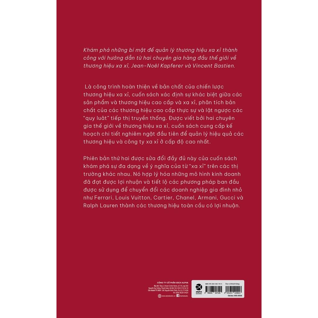 Bất kỳ ai tò mò về chiến lược kinh doanh của các thương hiệu xa xỉ. TÁC GIẢ Jean-Noel Kapferer là một nhà lãnh đạo tư tưởng về thương hiệu và quản lý thương hiệu. Là giáo sư tại HEC Paris, ông có bằng Tiến sĩ tại Đại học Northwestern (Mỹ) và là cố vấn tích cực cho nhiều tập đoàn Châu u, Châu Á và Châu Mỹ. Ông là tác giả của 12 cuốn sách, bao gồm The New Strategy Brand Management, The Luxury Strategy và Kapferer on Luxury, tất cả đều do Kogan Page xuất bản.