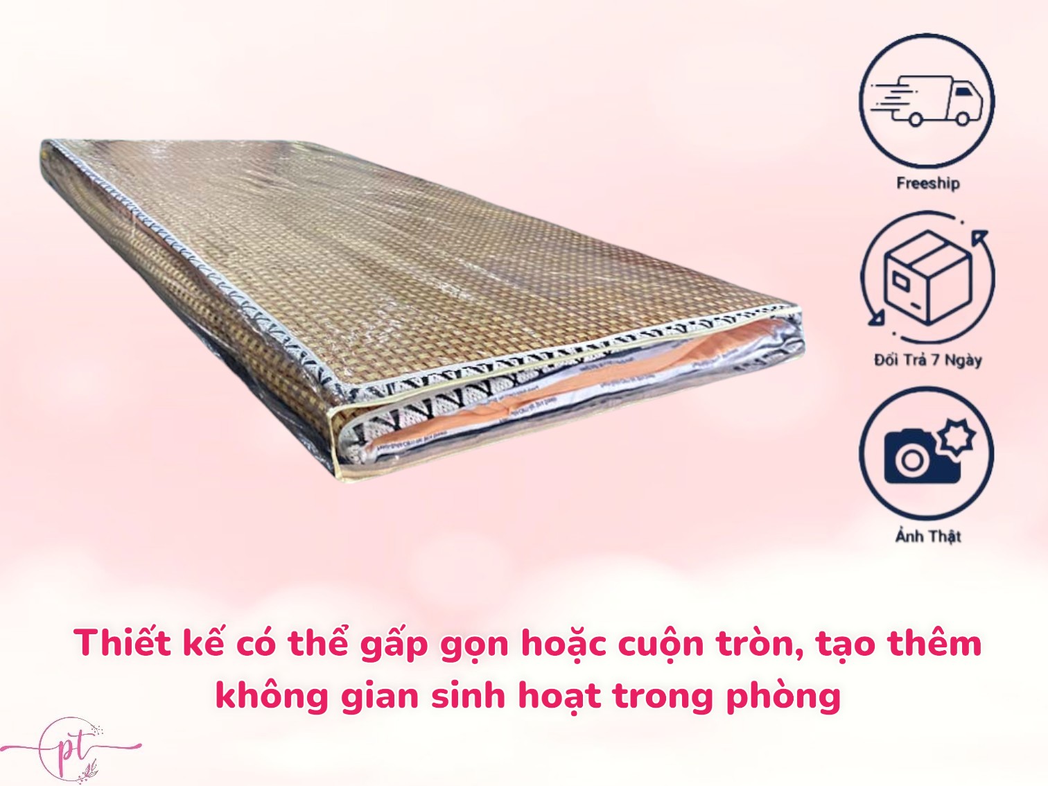 Mua tại TiktokVào mùa hè nắng nóng, sự mềm mại của những sợi vải nệm hoặc drap bỗng trở thành điều gây khó chịu vì chúng ôm sát cơ thể khi nằm, gây ra cảm giác hầm nóng (nếu bạn không có máy lạnh). Đó cũng là lí do mà chiếu điều hòa được sản xuất với tác dụng chính là mang lại sự thông thoáng cho vùng lưng người nằm, và đặc biệt phù hợp với những khách hàng yêu thích cảm giác nằm trên tấm lót mỏng dưới sàn.
