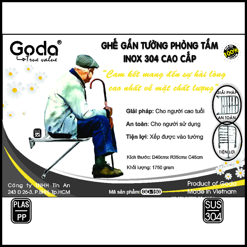Mua tại TiktokGHẾ GẮN TƯỜNG GẤP GỌN INOX 304 GODA- là giải pháp tiện lợi và an toàn cho không gian phòng tắm, phòng xông hơi, đặc biệt phù hợp với người cao tuổi, người khuyết tật hoặc khu vực công cộng. Thiết kế gắn tường, gấp gọn, tiết kiệm diện tích khi không sử dụng. Chất liệu inox 304 cao cấp giúp chống gỉ sét, chịu lực tốt và khả năng chống trượt an toàn. THÔNG SỐ KỸ THUẬT