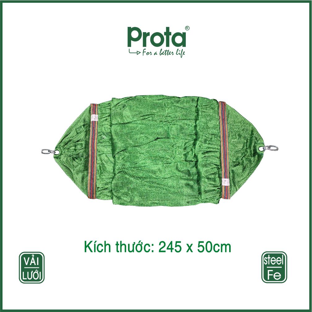 Sản phẩm: Võng vải lưới Prota cao cấp - Êm ái, thoáng mát ĐẶC ĐIỂM NỔI BẬT - Chất liệu vải lưới cao cấp, thoáng khí, bền đẹp theo thời gian. - Kích thước rộng