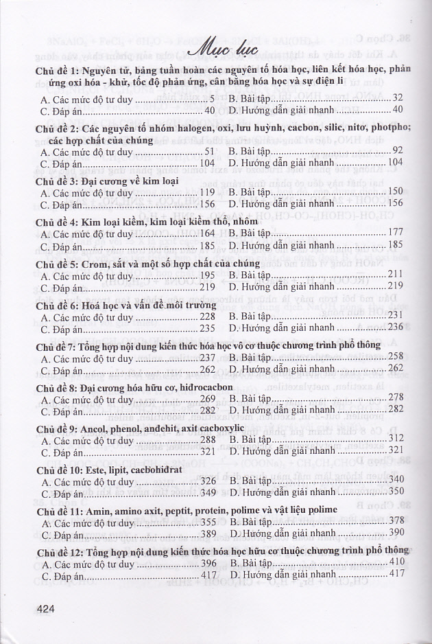 Cuốn sách được chia làm 12 chủ đề kiến thức theo đúng ma trận đề thi THPT quốc gia. Trong mỗi chủ đề chúng tôi đều đưa ra các câu hỏi từ dễ đến khó với các mức độ tư duy từ thấp đến cao để các em rèn luyện năng lực tư duy của mình đồng thời cũng phù hợp với mỗi đối tượng học sinh. Các em chỉ thi tốt nghiệp thì làm các câu hỏi ở mức độ nhận biết, thông hiểu. Các em dùng kết quả để xét tuyển vào các trường Đại học và Cao đẳng thì cần làm thêm các câu hỏi ở mức độ vận dụng và vận dụng cao.