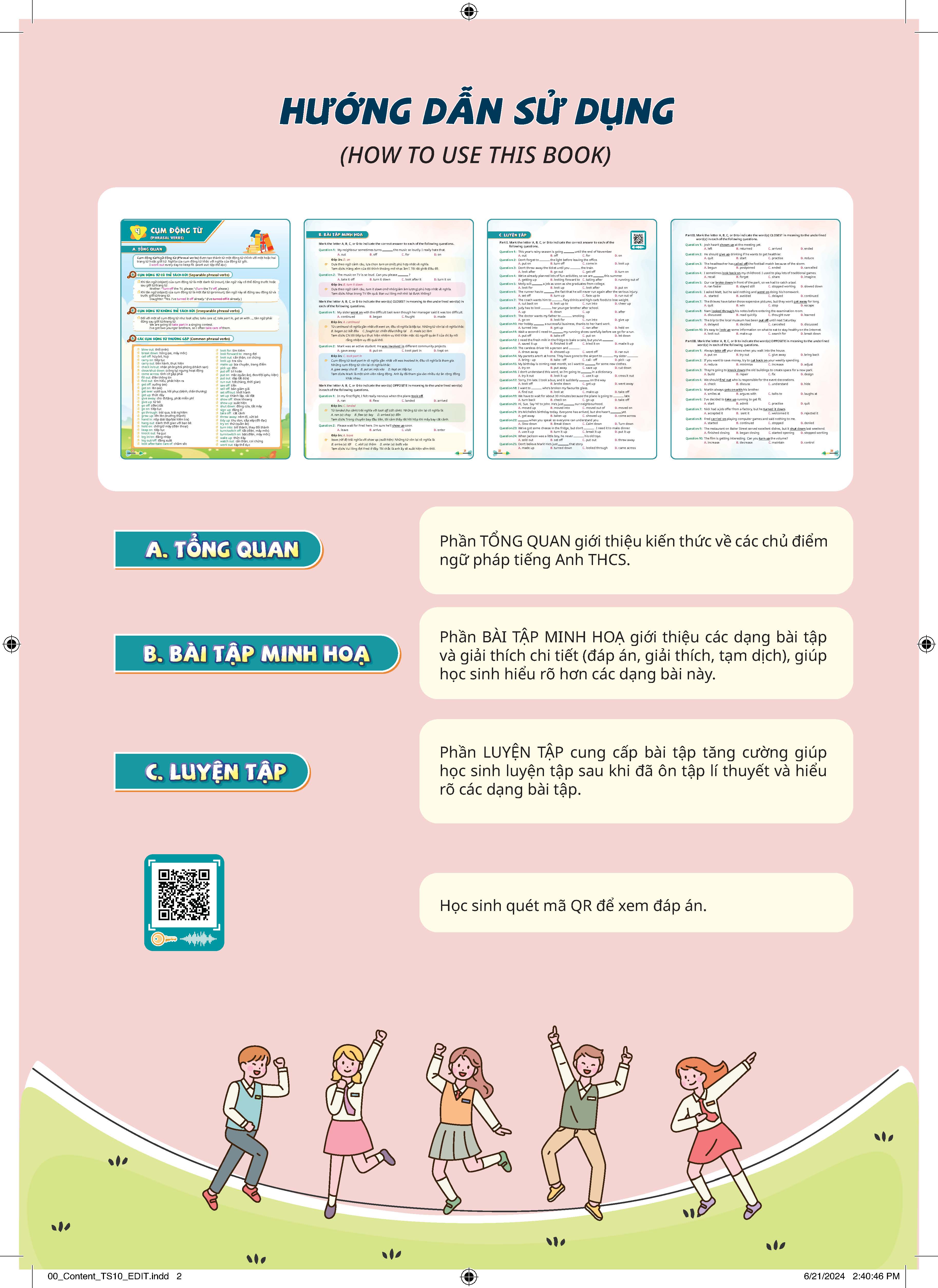 Mua tại TiktokChinh phục kì thi Tiếng Anh - Tuyển sinh 10 tập 1 được biên soạn nhằm trang bị cho các em học sinh nguồn tài nguyên bổ trợ phong phú theo chương trình học và giúp các em chuẩn bị tốt nhất cho kì thi tuyển sinh lớp 10 môn tiếng Anh. Sách bao gồm phần tóm tắt lý thuyết và bài tập thực hành được thiết kế bám sát các dạng câu hỏi trong đề thi tuyển sinh lớp 10, tạo cơ hội cho các em làm quen với các định dạng đề thi cũng như củng cố kiến thức từ vựng, ngữ pháp, phát âm và thực hành các chiến lược làm bài một cách hiệu quả.