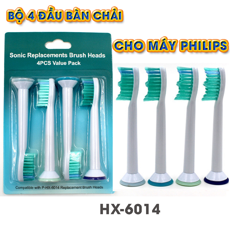 Mua tại TiktokBộ 4 đầu bàn chải đánh răng điện HX-6014 cho máy Philips Sonicare HX3, HX6, HX7, HX8, HX9, R, FlexCare +, FlexCare, HealthyWhite, HydroClean, EasyClean, DiamondClean Mô tả: Các bạn đều biết mọi đầu đánh răng khi sử dụng từ 3-6 tháng đều nên thay mới để đảm bảo vệ sinh và giữ cho máy được bền. Khi mua máy, Nhà SX chỉ trang bị 1 số đầu nhất định. Vậy cần mua thêm đầu thay thế để dự phòng và thay đổi định kỳ. Thông tin: