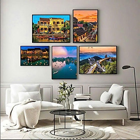 Kích thước của tranh : Kích thước : Size1: 2 tấm 25x35+3 tấm 15x21 Size 2: 2 tấm 30x45+3 tấm 20x25cm Size 3: 2 tấm 40x60+ 3 tấm 30x40cm