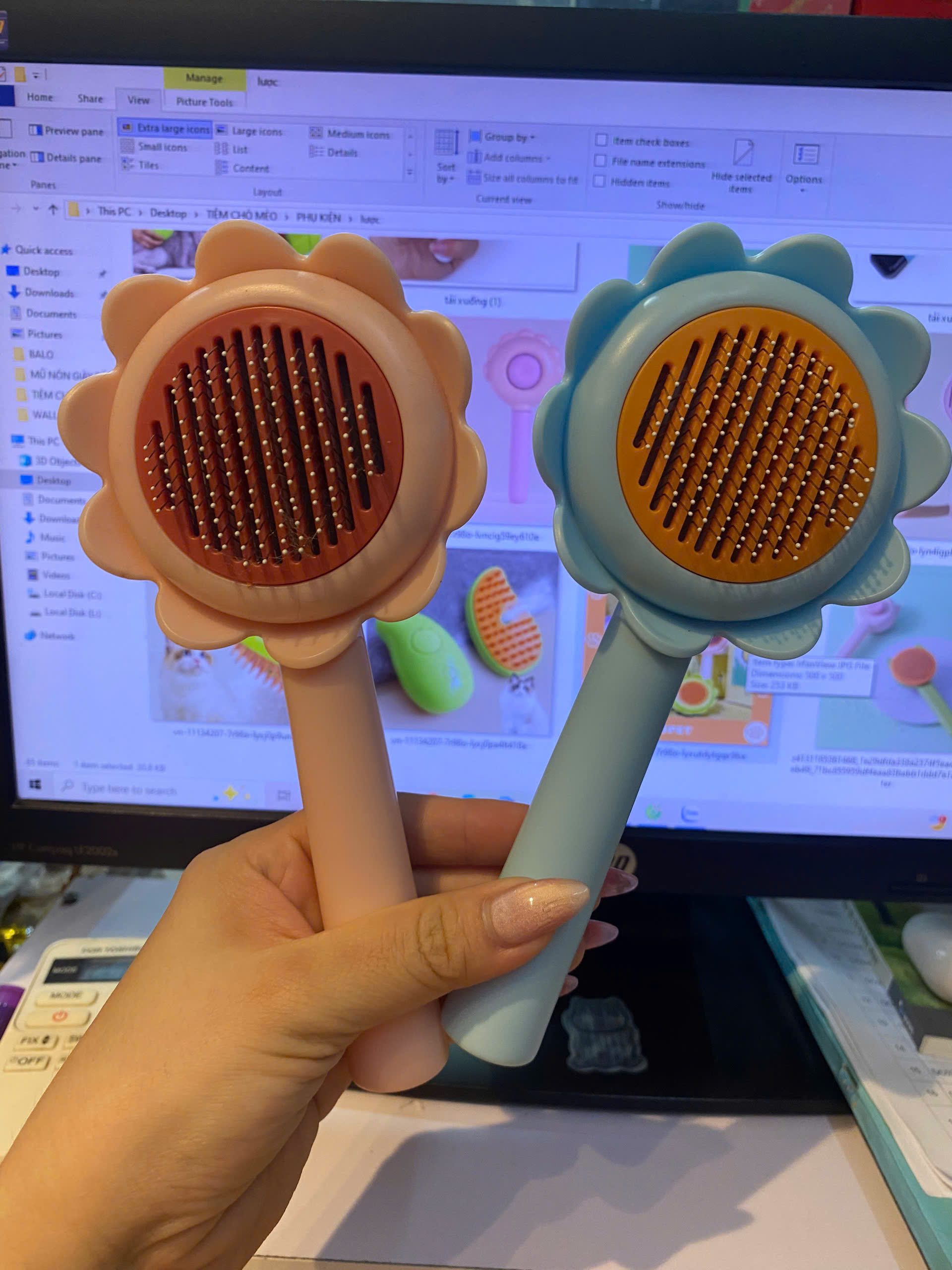 CÓ HỘP - Lược chải lông gỡ rối cho chó mèo hình hoa dướng dương có nút bấm đẩy lông thừaCÓ HỘP - Lược chải lông gỡ rối cho chó mèo hình hoa dướng dương có nút bấm đẩy lông thừaCÓ HỘP - Lược chải lông gỡ rối cho chó mèo hình hoa dướng dương có nút bấm đẩy lông thừa