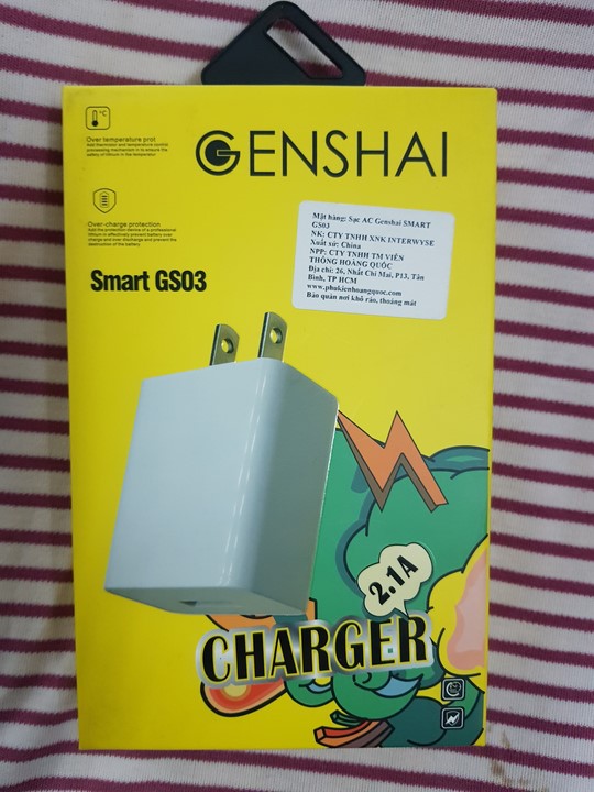 - Cóc sạc Genshai smart GS03 - Cốc sạc nhanh 2.1A - Hàng chính hãng - - Cốc sạc AC dùng cho hầu hết máy Smartphone & Tablet - - Thiết kế nhỏ gọn, tiện