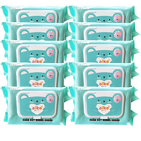✨Combo 10 Gói Khăn Ướt Aiko Kháng Khuẩn 100 tờ/Gói không hương màu Xanh