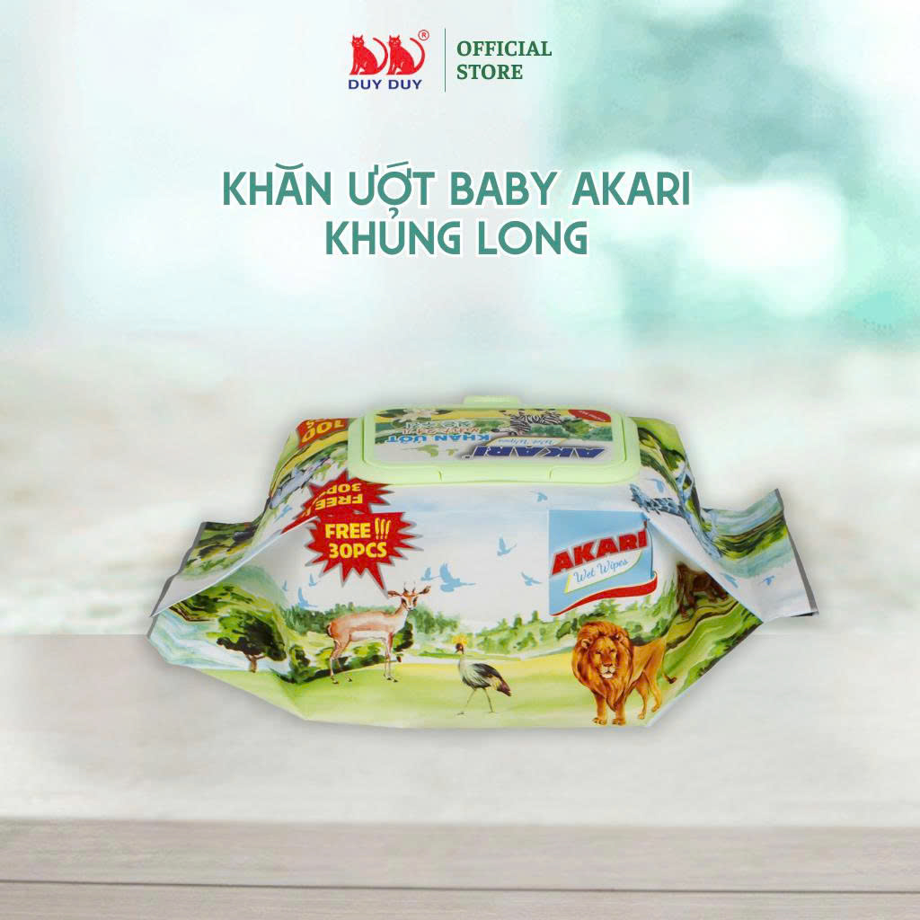 Combo Khăn ướt Akari khủng long vải không dệt rayon cao cấp 130 miếng (13.5x20cm) không paraben dành cho bé Khăn ướt Akari KHỦNG LONG 130 tờ cho bé được làm từ vải không dệt
