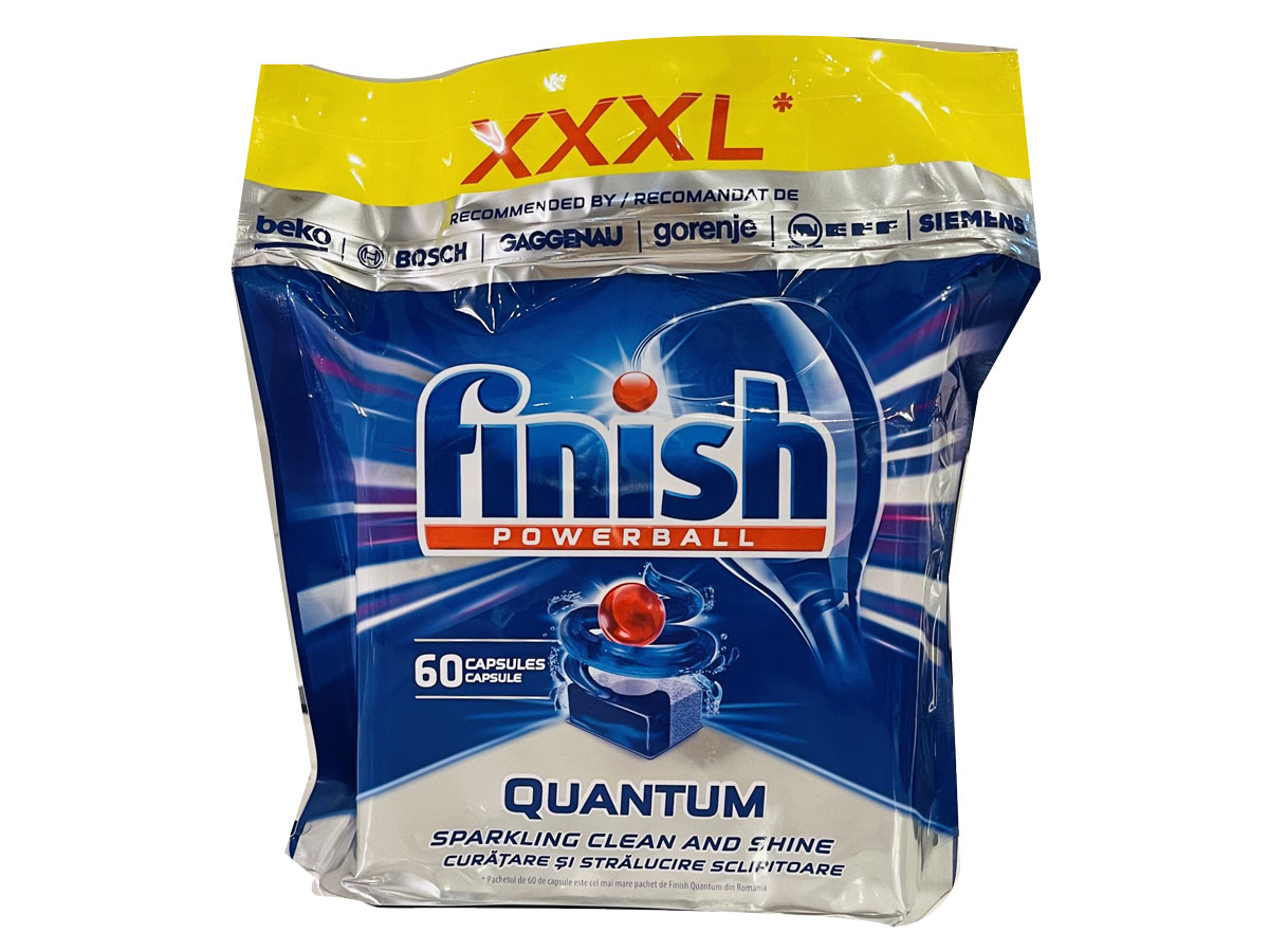 Một viên rửa chén Finish Quantum Max Dishwasher Tablets có thể làm sạch một lượng đồ rửa lên đến 16 bộ chén đĩa.