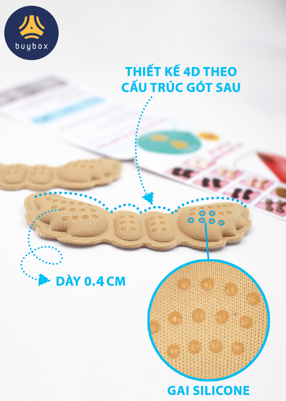 - Đặt lót 4D và dán cố định vào giày Lưu ý: Sản phẩm mang thương hiệu buybox có bao bì in logo và hướng dẫn sử dụng chi tiết đi kèm.