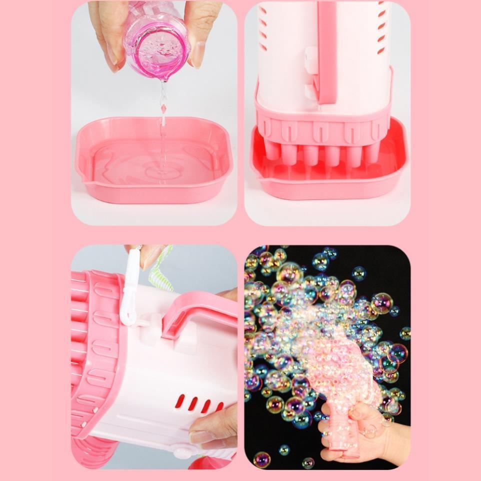 Súng bắn bong bóng xà phòng 32 nòng chạy bằng pin siêu mạnh kèm dung dịch pha bong bóng nhiều màu an