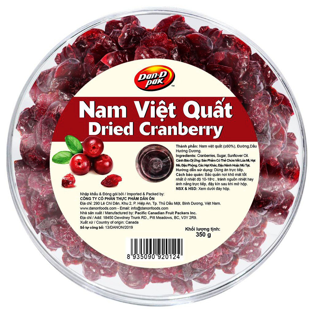 Nam việt quất khô nhập khẩu Canada - dried cranberry Dan.D.Pak không chất bảo quản,giải độc tố trong cơ thể,làm đẹp da,là liều thuốc hữu hiệu để hạn chế nguy cơ bị ung thư, đột quỵ, nhiễm virus, bệnh tim và bệnh nhiễm trùng men
