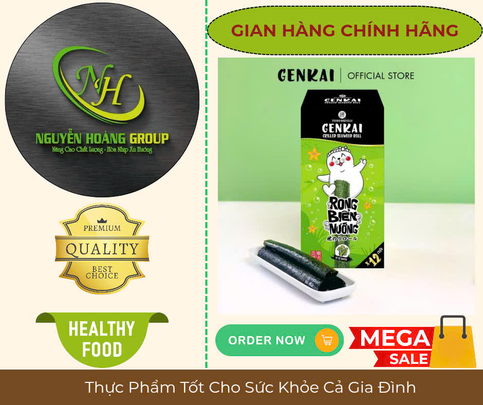 Tên sản phẩm: RONG BIỂN NƯỚNG CUỘN Có 2 Vị : Tự Nhiên & Vị Cay NÓNG Thành phần: Rong biển 68%, dầu ngô 26.7%, dầu mè 4.3%, muối biển 1% Lá Rong biển có