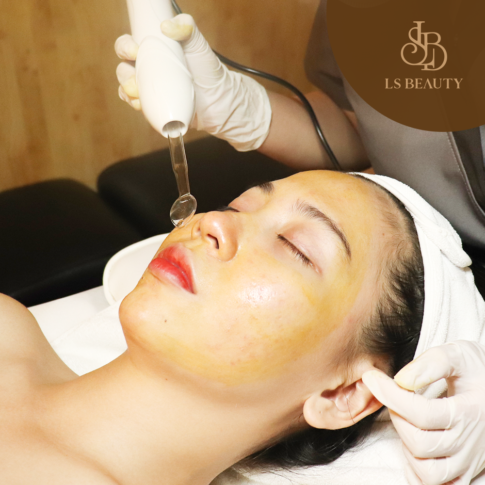Nhằm hạn chế lỗ chân lông bị giãn nở to sau khi lấy mụn, cũng như tình trạng sưng của các nốt mụn viêm, kỹ thuật viên sẽ dùng máy điện di làm sạch bề mặt da. Theo sau đó là mặt nạ đất sét hữu cơ – dòng sản phẩm cho da nhạy cảm/dầu mụn – Dermassure Pore Refining Mask của Origani – làm dịu làn da vừa bị tổn thương bởi quá trình lấy mụn một cách nhẹ nhàng nhất.