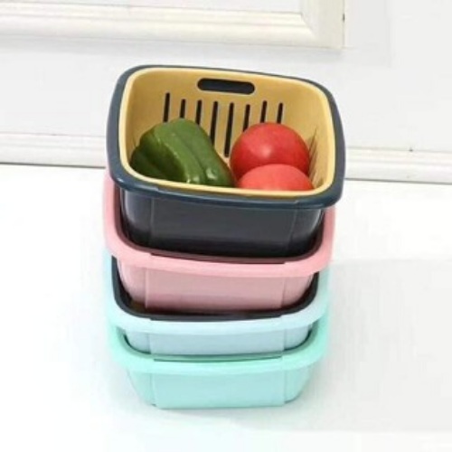 ✨Combo 2 rổ nhựa kèm chậu 2 trong 1 có nắp đậy - Giao màu ngẫu nhiên