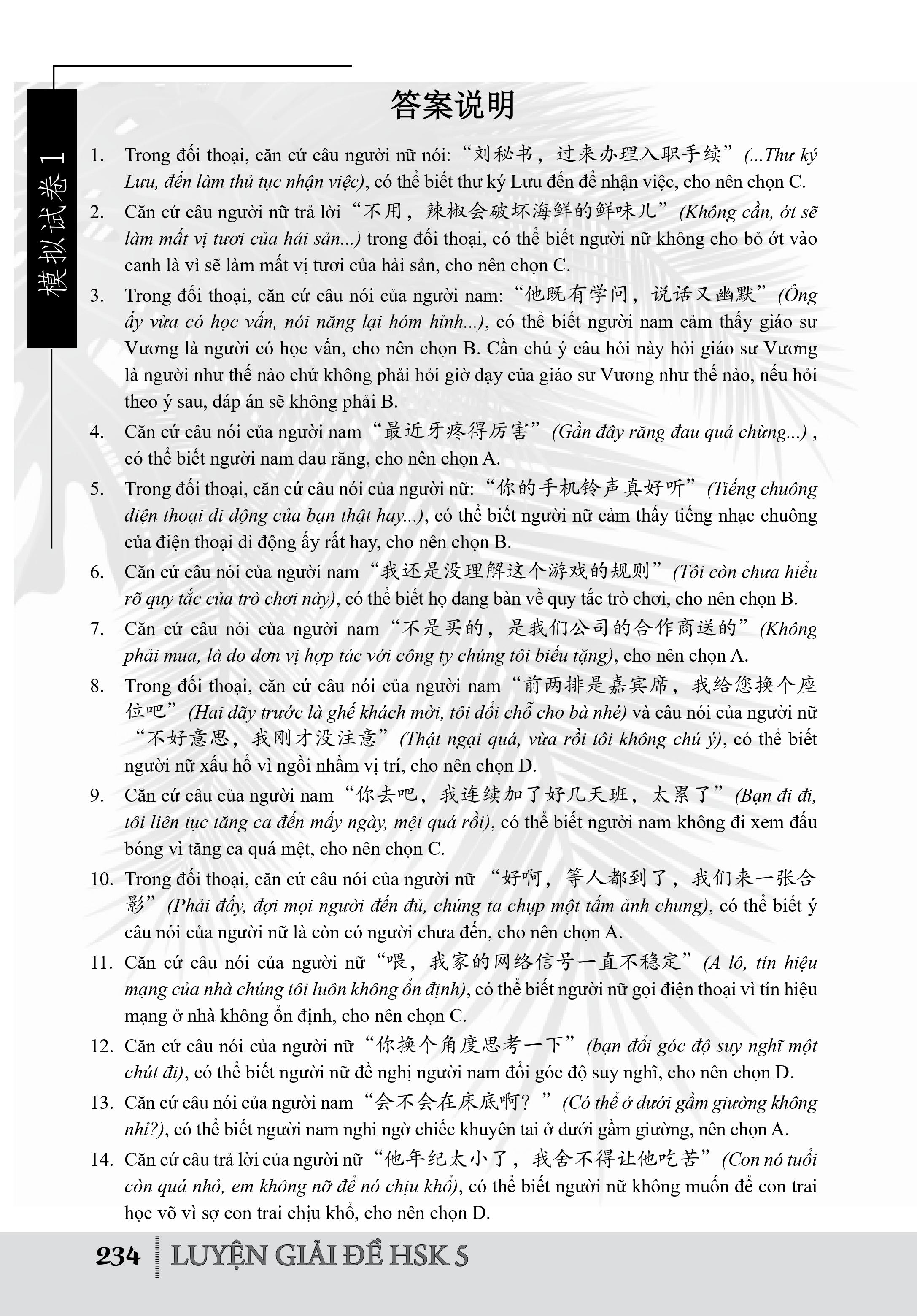 • Phần 2: Đề thi mô phỏng (cung cấp 10 đề thi mô phỏng HSK cấp 5)