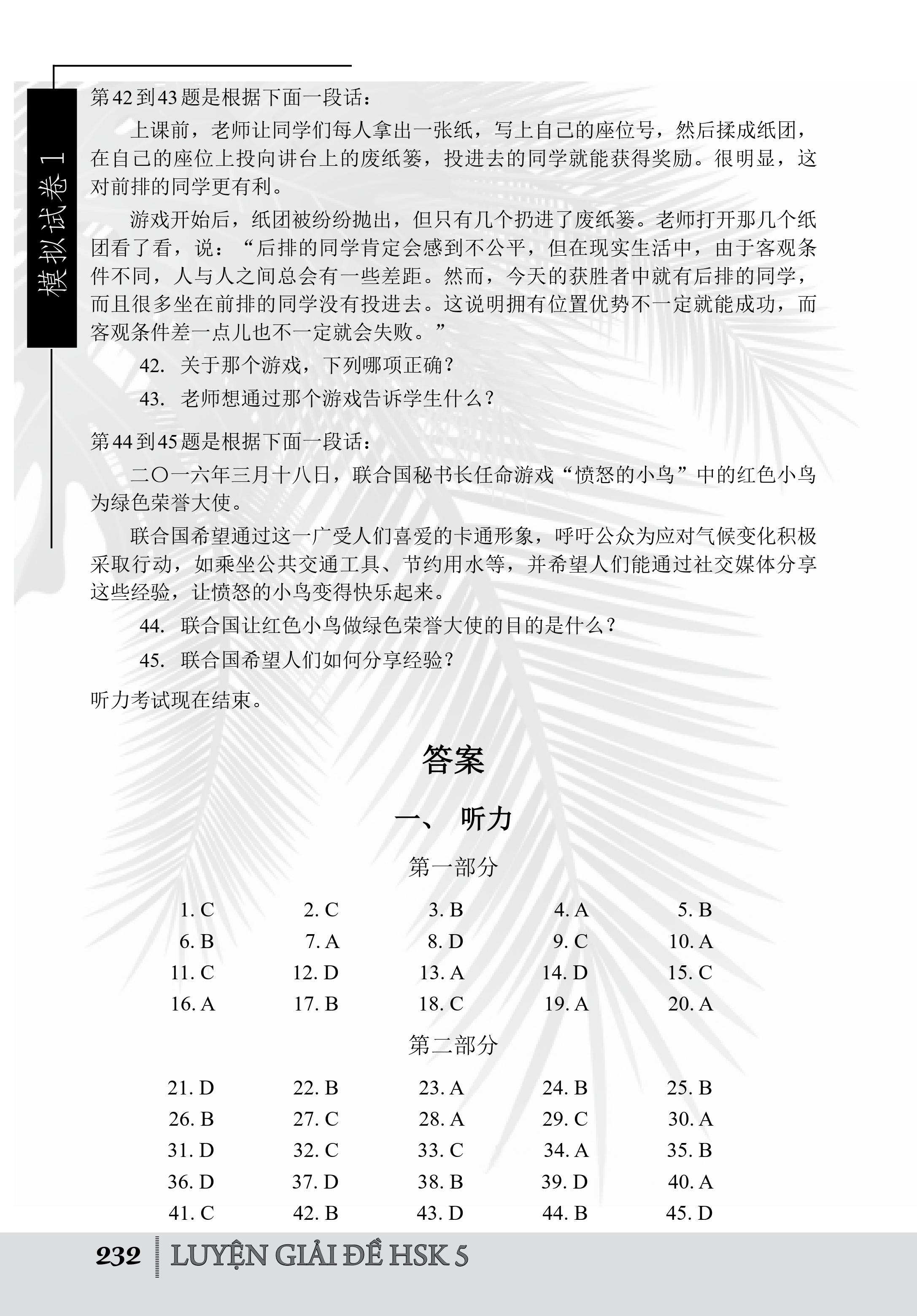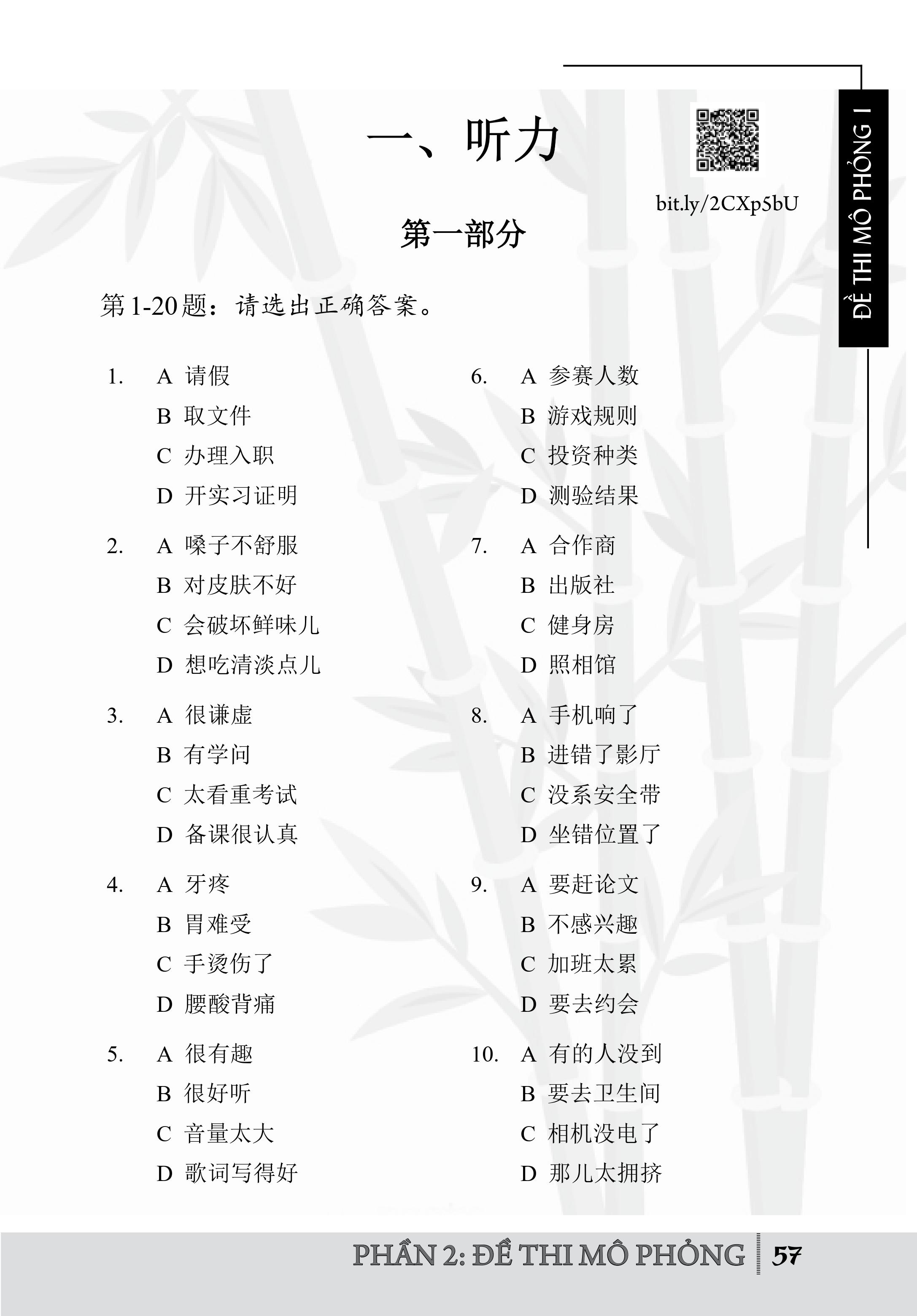 Phần 2: Đề thi mô phỏng (cung cấp 10 đề thi mô phỏng HSK cấp 5)