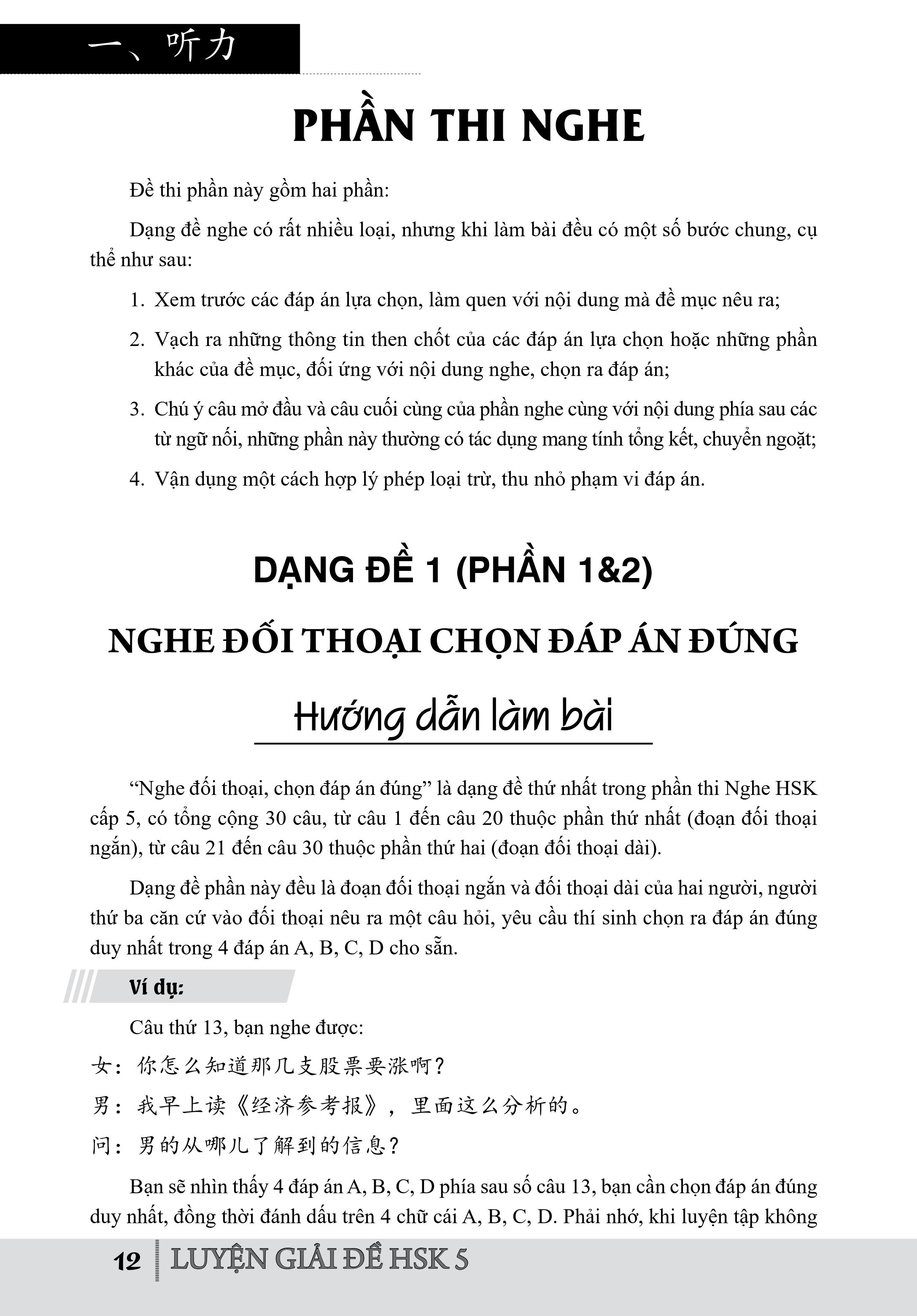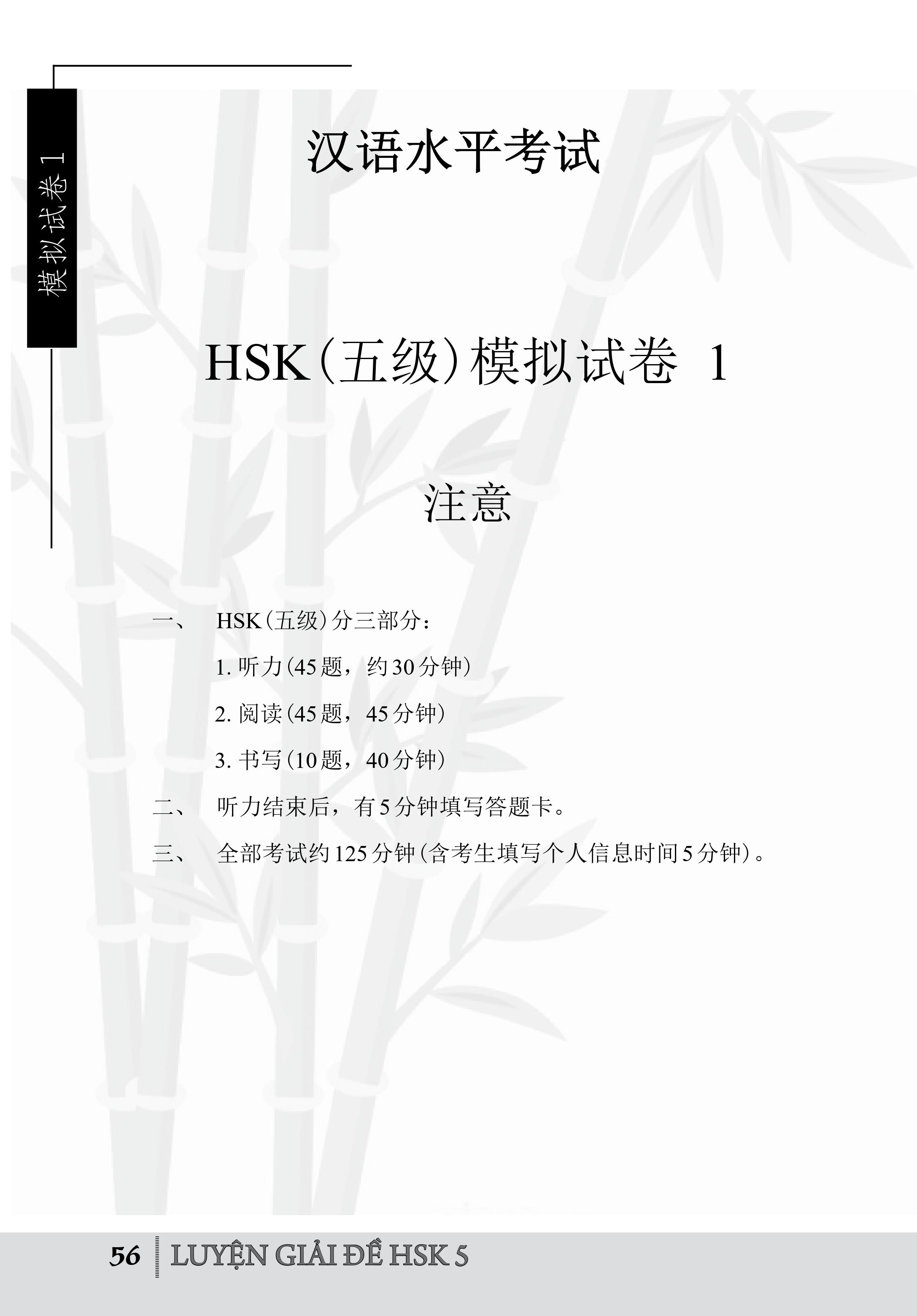 Sách Luyện giải đề HSK cấp 5 bao gồm 3 phần: