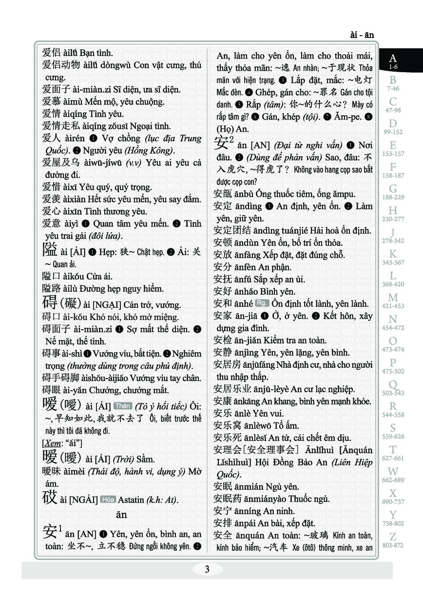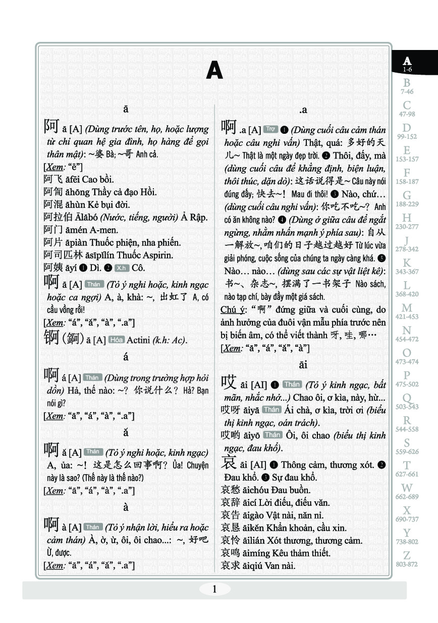 Phần Việt Hán có lượng từ vựng khá phong phú, cập nhật nhiều từ ngữ đang lưu hành hiện nay cũng như nhiều thuật ngữ chuyên ngành tin học, kinh tế, chính trị, xã hội, sinh học, y học, toán học, hóa học, vật lý học, văn học, ngôn ngữ học… Hầu hết những từ khó dùng đều được kèm theo ví dụ minh họa để các bạn có thể sử dụng linh hoạt trong những ngữ cảnh khác nhau.