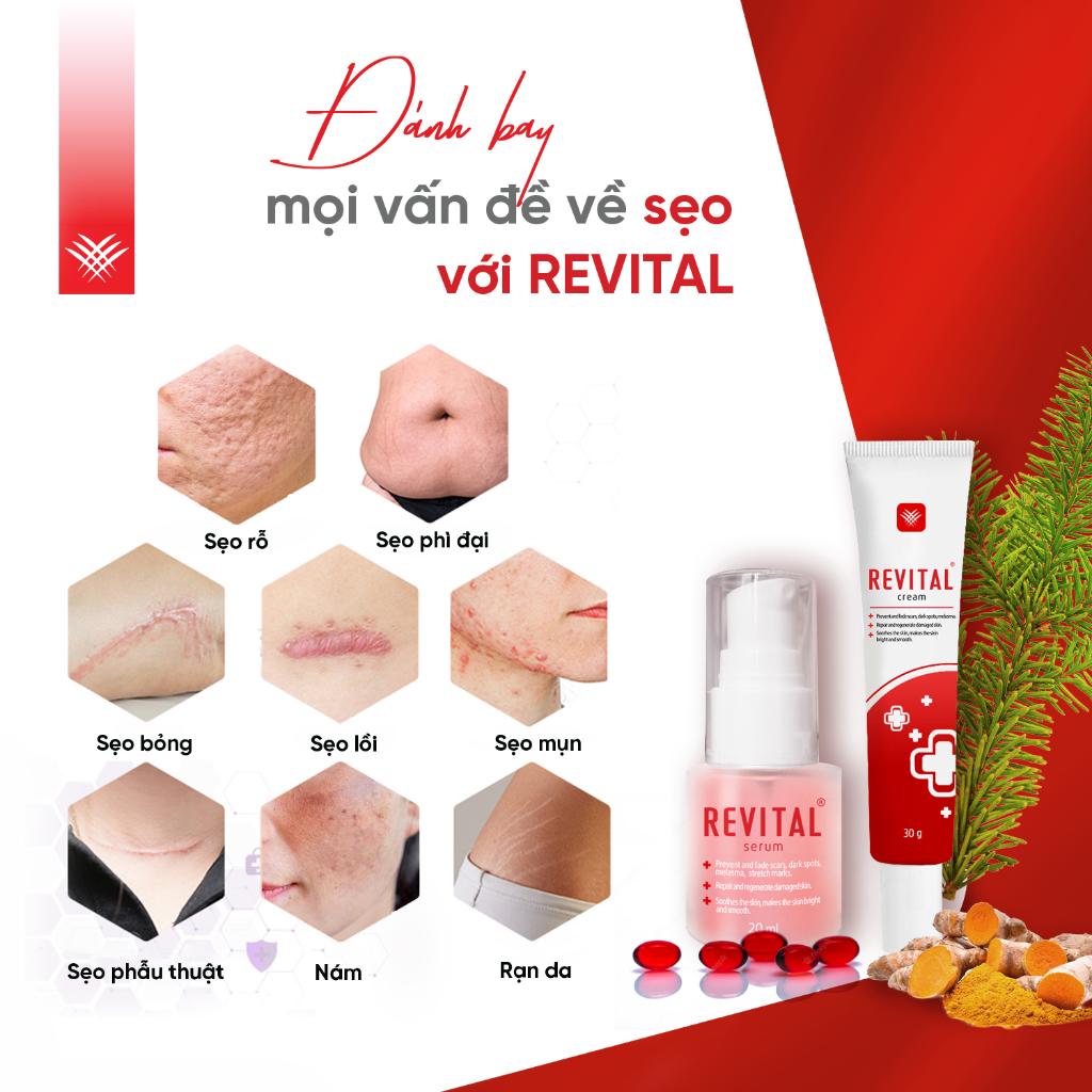 Mua tại TiktokRevital là kem sẹo ứng dụng công nghệ Bioseo Nano Anh Quốc. Dòng sản phẩm chuyên hỗ trợ làm mờ các loại sẹo, là phẳng sẹo lồi, sẹo lõm chỉ sau một thời gian ngắn sử dụng.