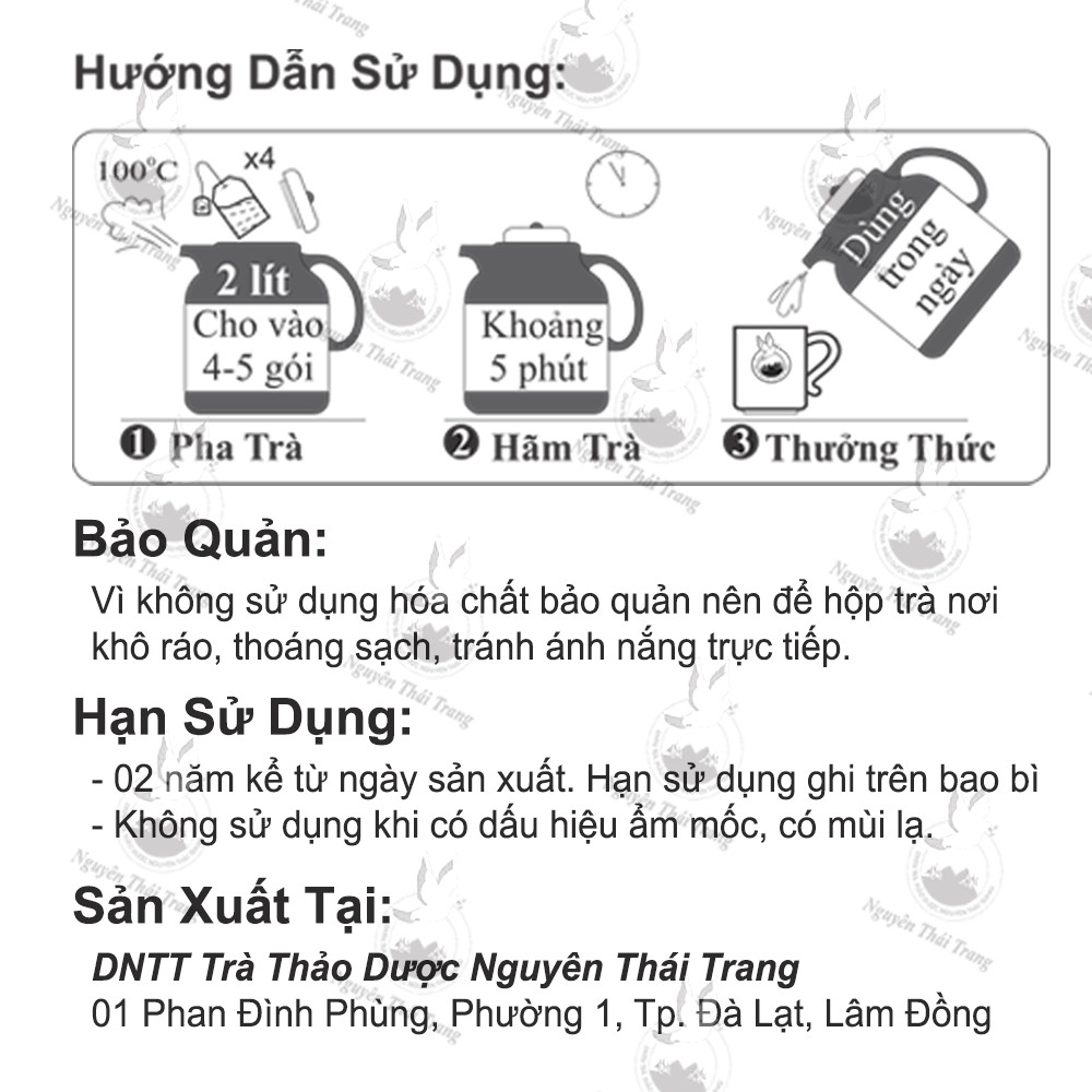 Mua tại TiktokTrà thảo mộc bảo vệ sức khỏe do Hộ Kinh Doanh Huyền Anh Store chịu trách nhiệm sản xuất và phân phối Trà Hoàng Thảo Mộc có thành phần gồm: Trà dây, Cỏ ngọt, Hoa nhài,