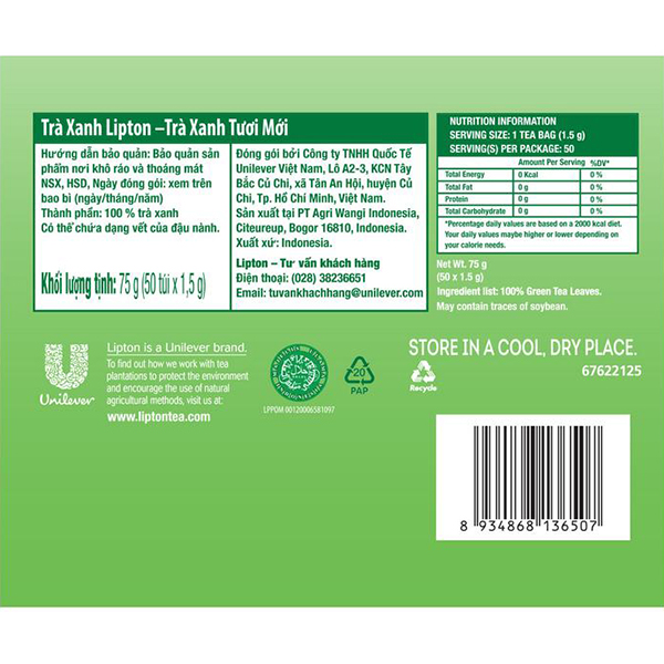 ✨Combo 3 Lipton Trà Xanh Tươi Mới Hộp 1.5g x 50 túi